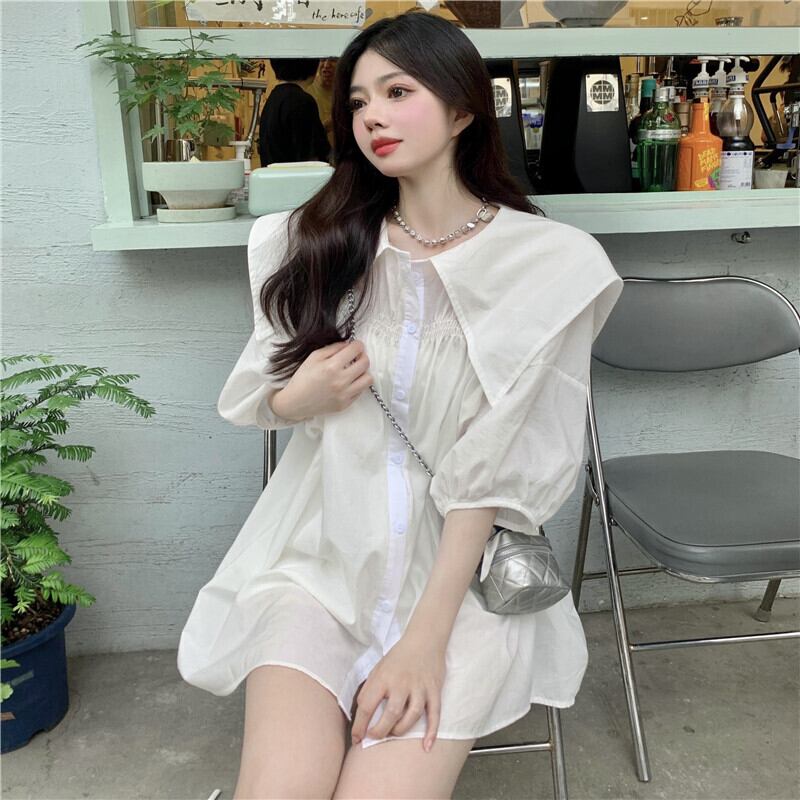 ドレス サマーソリッド カラーシャツ スカート 大人ガーリー スウィート キュート カジュアル 夏物 ソリッドカラー YY-ファッション92265441884