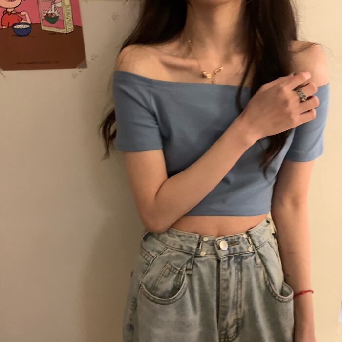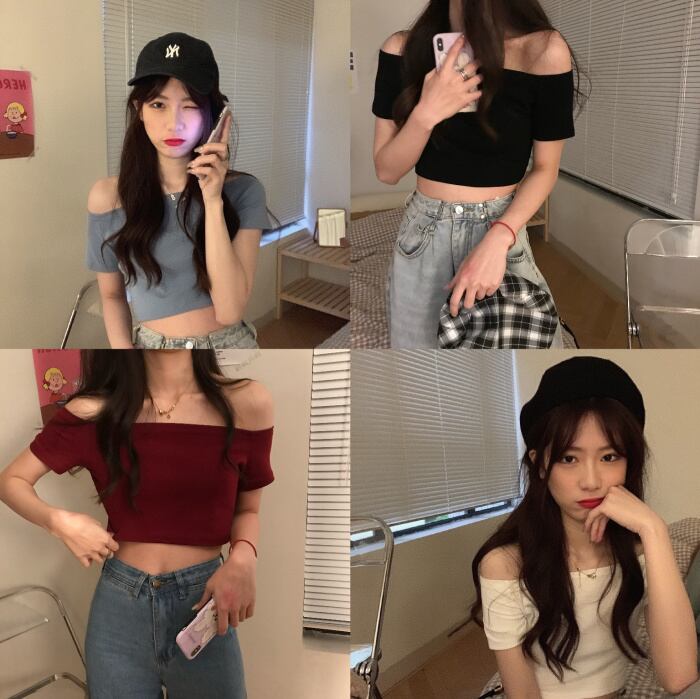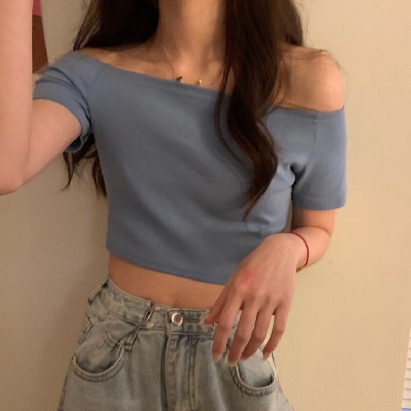 ストラップレスショートTシャツ ハイウェストサマー 夏物 YY-ファッション46893412987