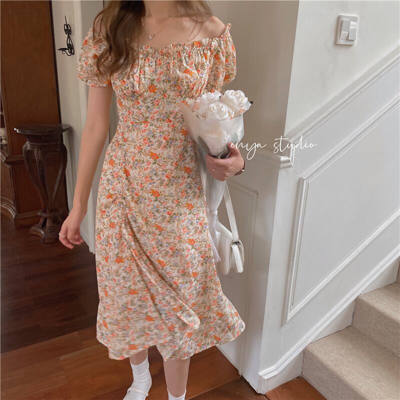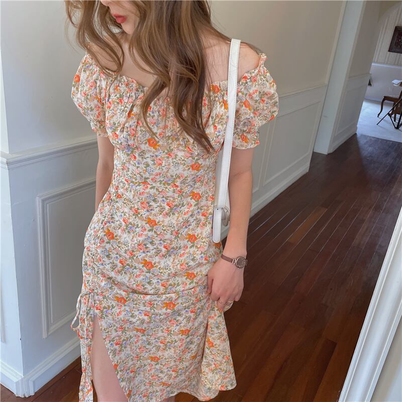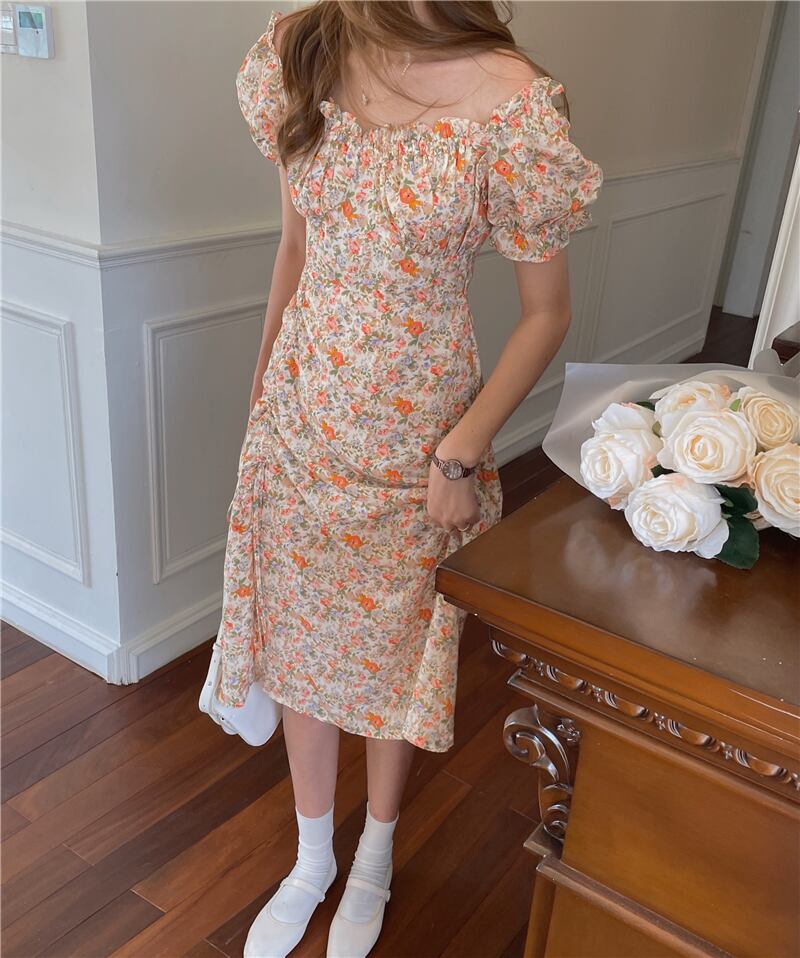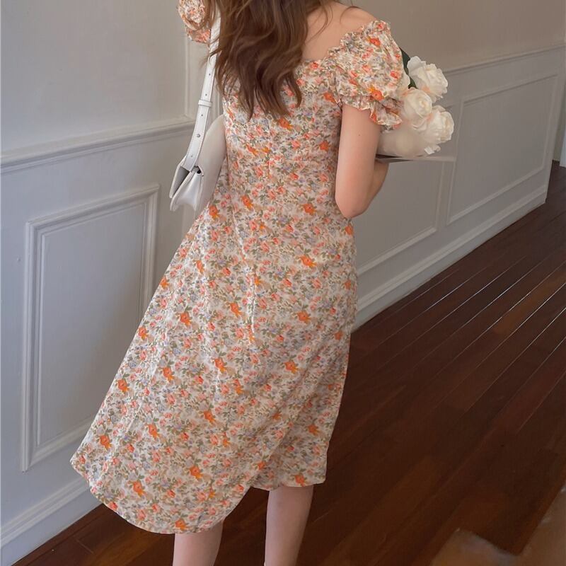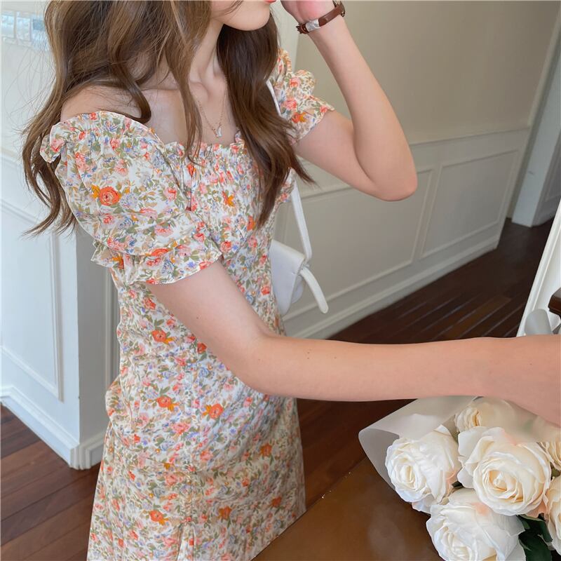 フローラルドレス サマーウェストスタンダードスタイル薄手カラー半袖スリーブAライン ショート レトロ ハーフスリーブ 夏物 花柄 スクウェア YY-ファッション11119807599