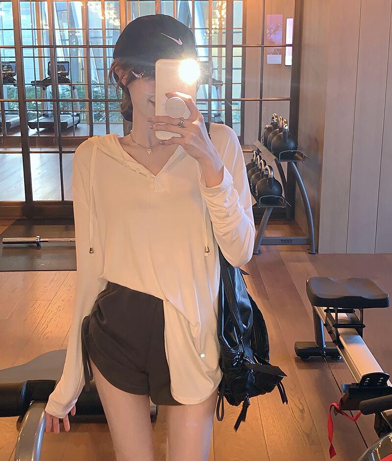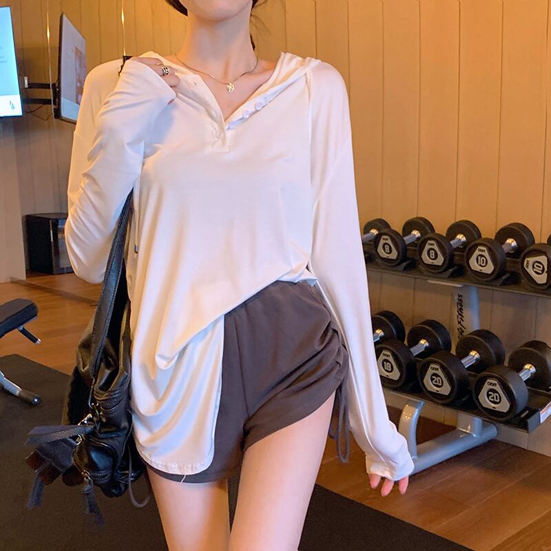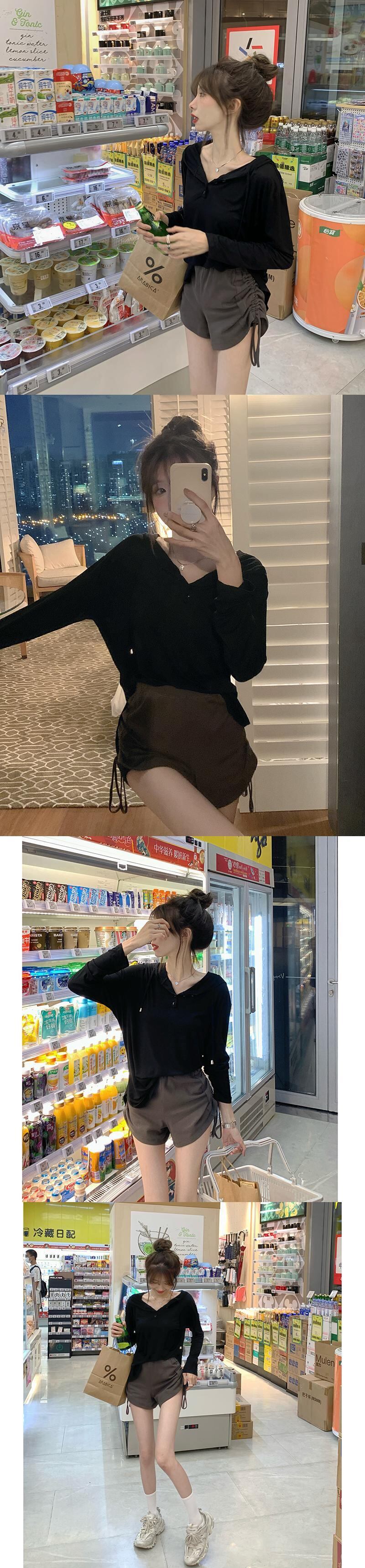 サマー長袖スリーブフードトップス ギャザーショーツ ロング 夏物 ブルマー YY-ファッション34081325151