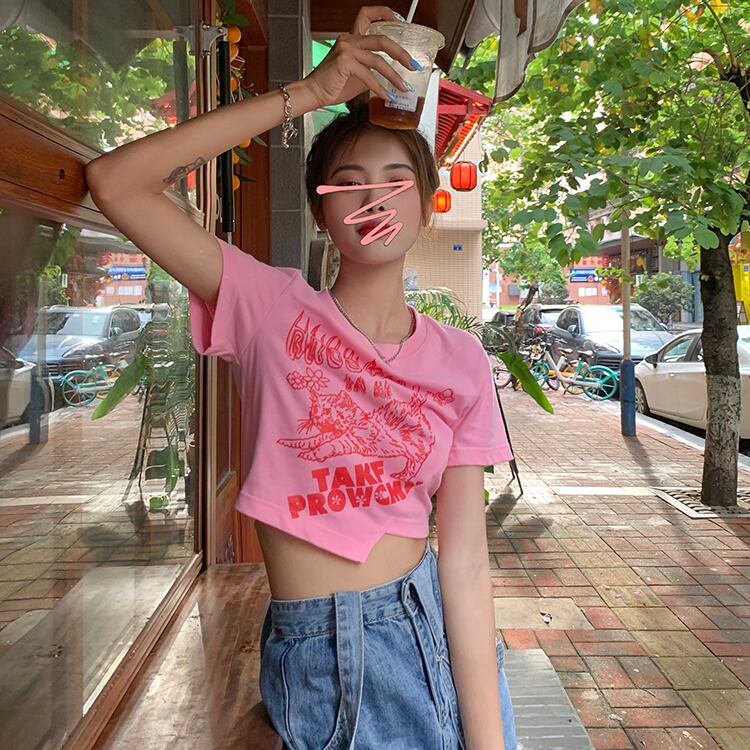 ショートTシャツ サマースタイルハイウェストウェストトップス かわいい 夏物 YY-ファッション89825572445
