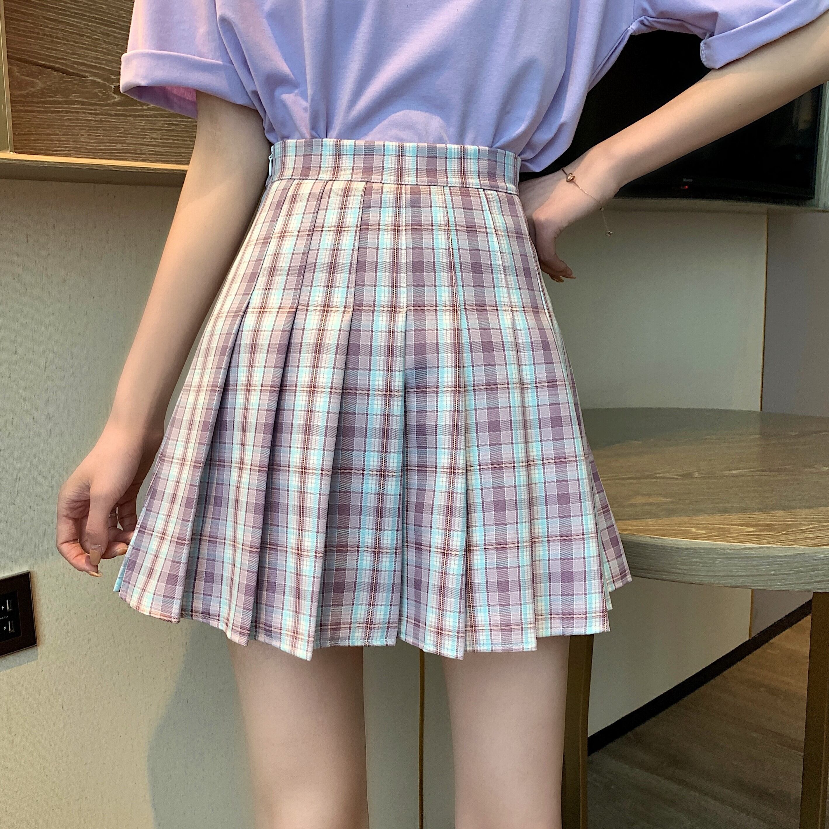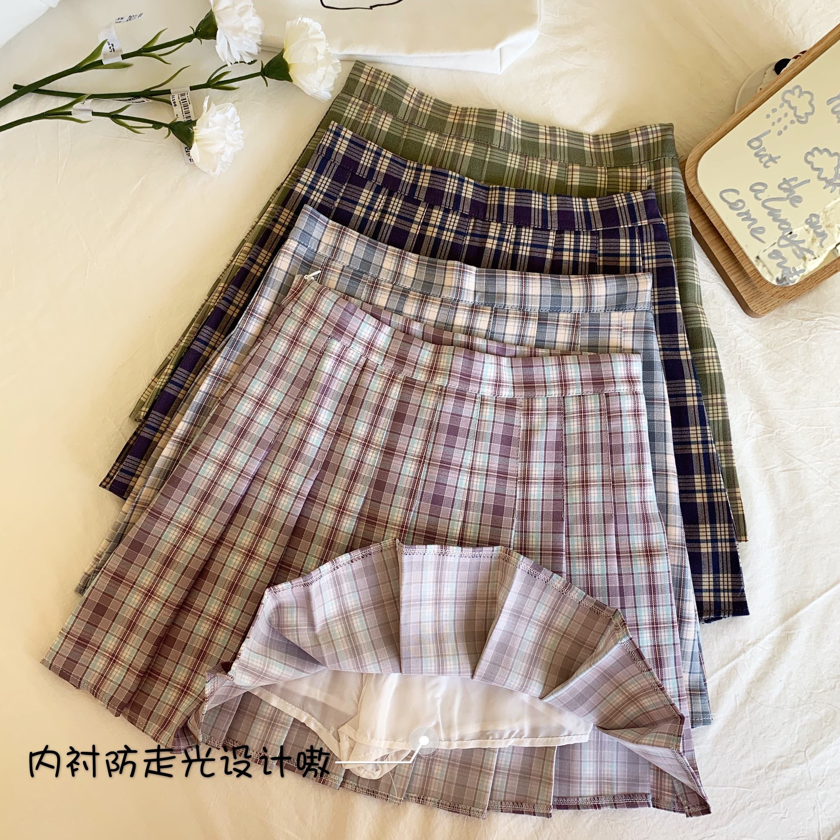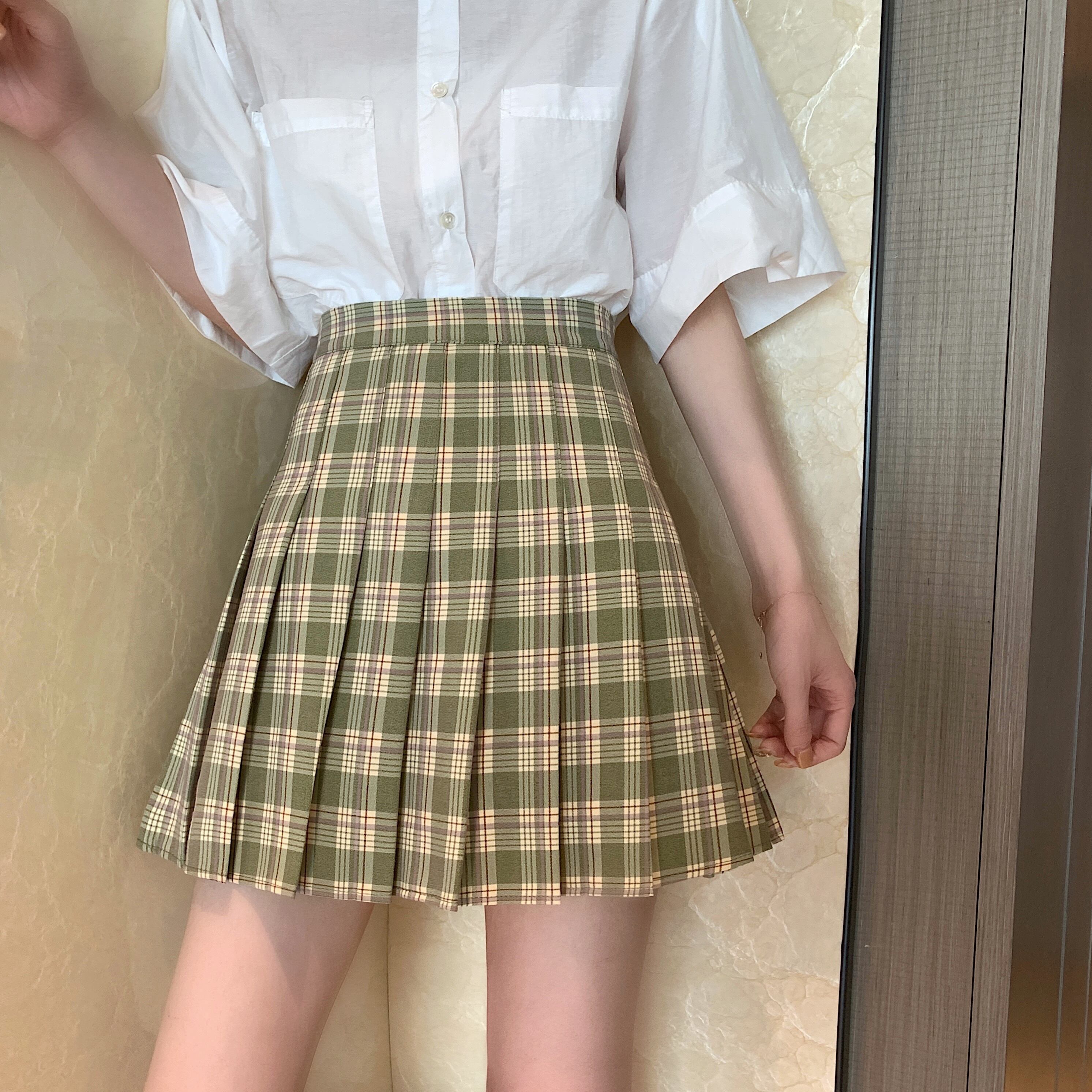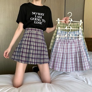 ウェストスリム格子柄スカート サマーAラインプリーツ 夏物 YY-ファッション68018130257