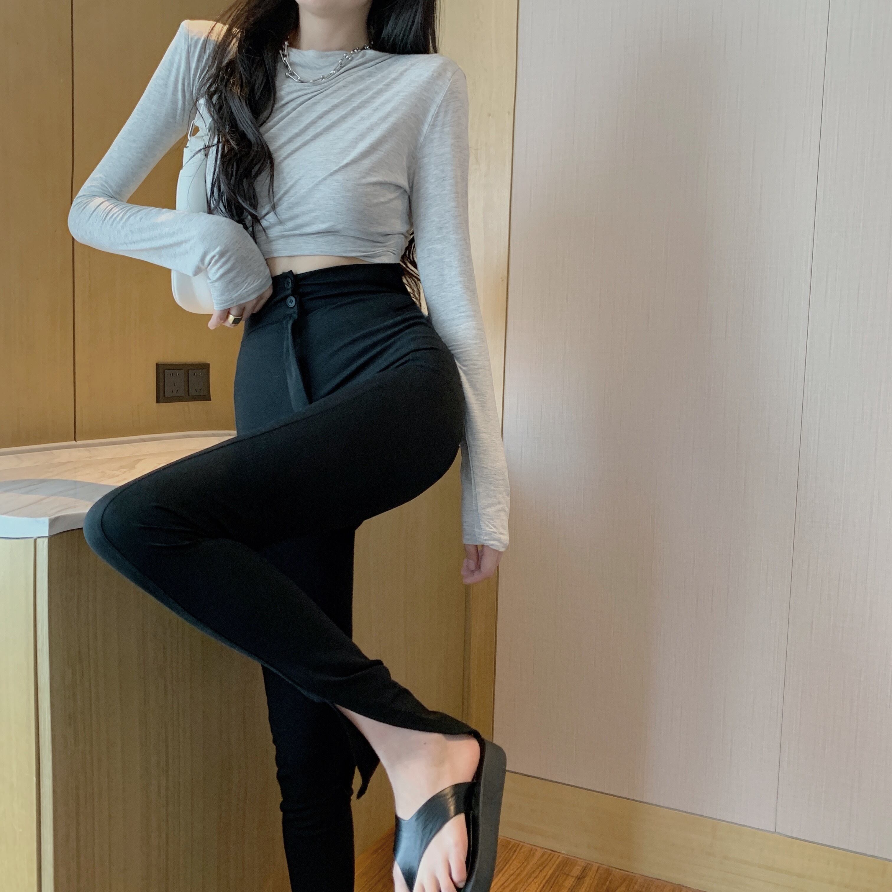 サマースリムトップス ハイウェストブラックレディース ロング 夏物 YY-ファッション86384921766