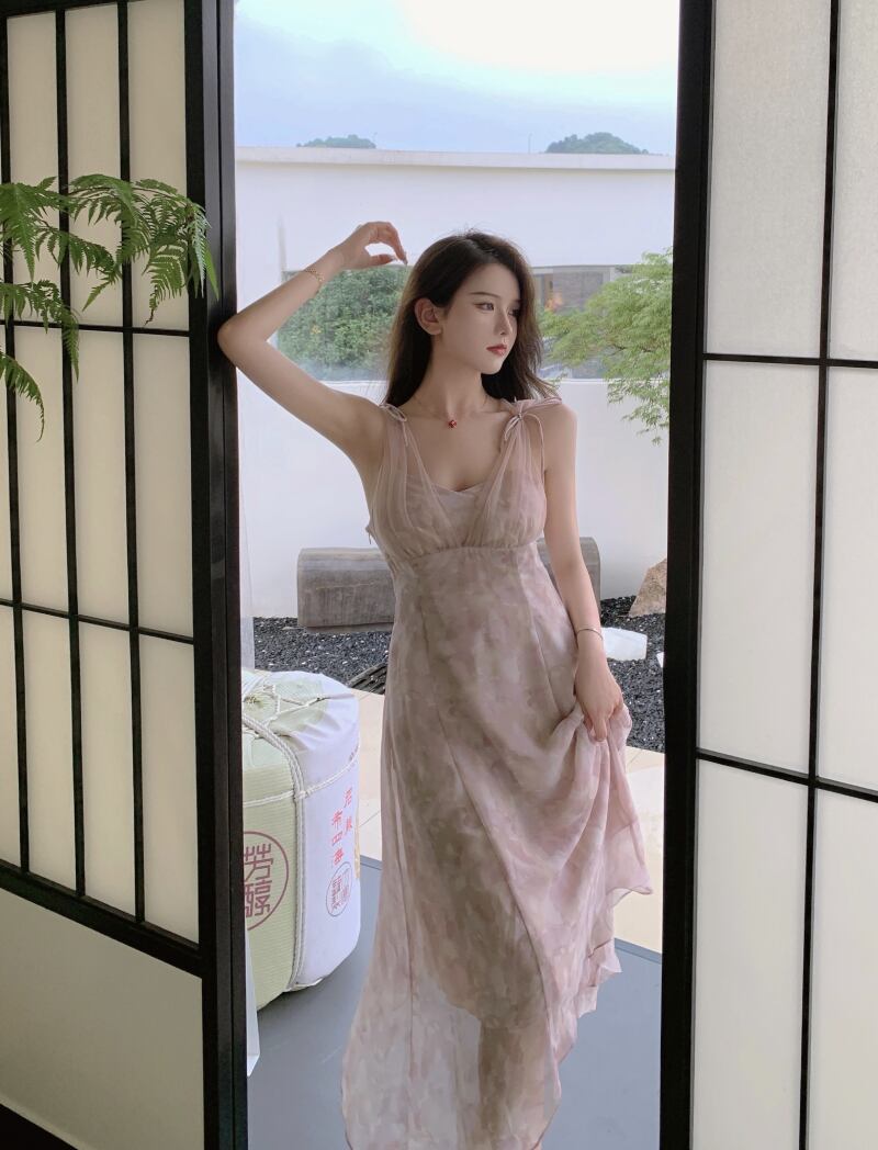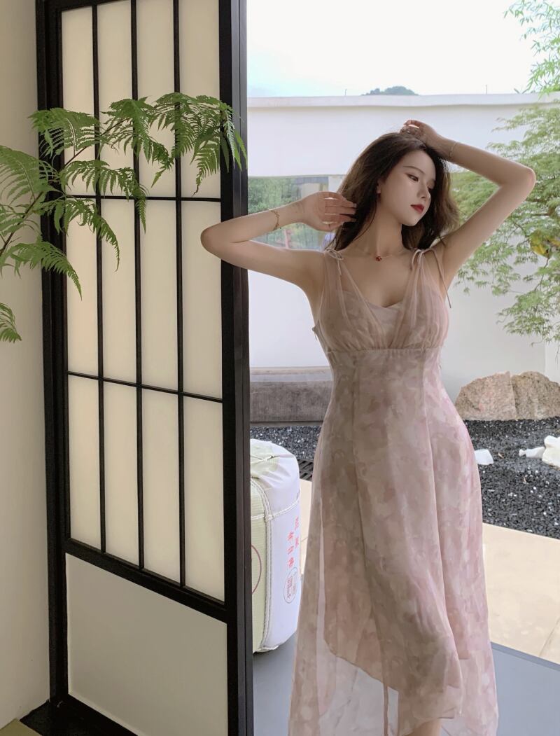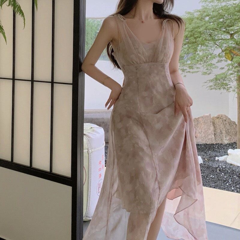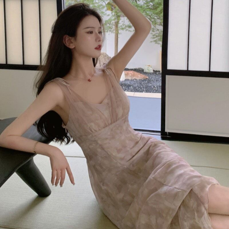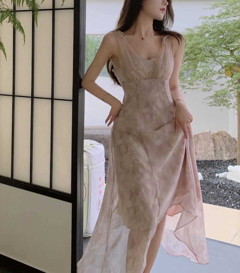 メッシュスカート ウェストドレス サマーVネック 夏物 ステッチ YY-ファッション97603167434