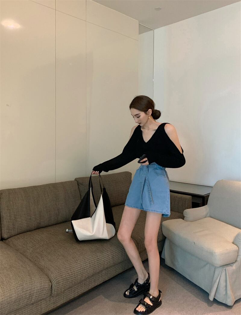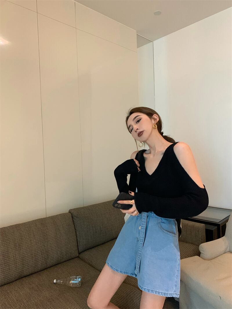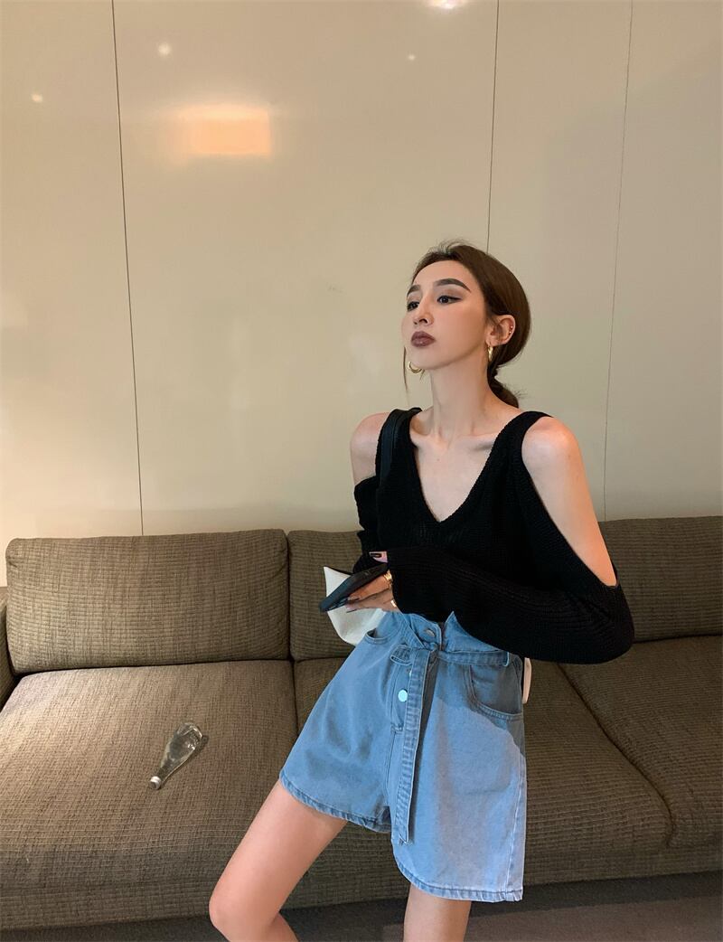 サマーブラックストラップレスニットトップス ハイウェストウェストカジュアルショーツ レディース 夏物 ブルマー YY-ファッション26020143211