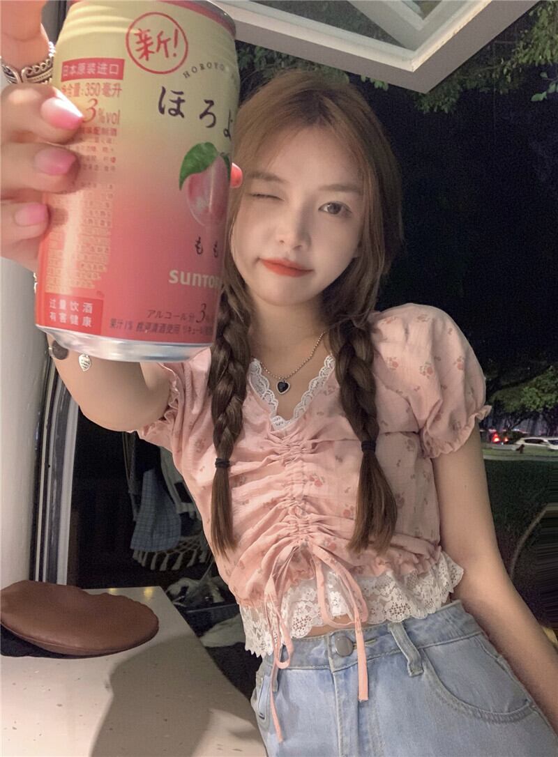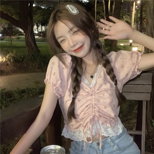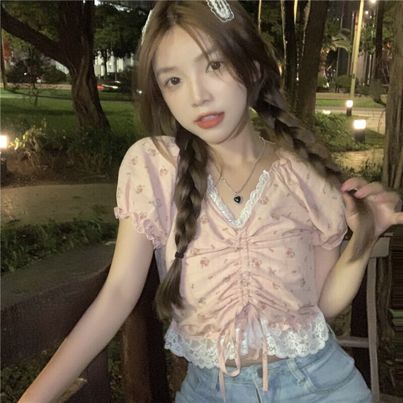Vネックスリーブギャザーショートトップス ドレス サマー半袖シャツ ハーフスリーブ 夏物 YY-ファッション68167808611