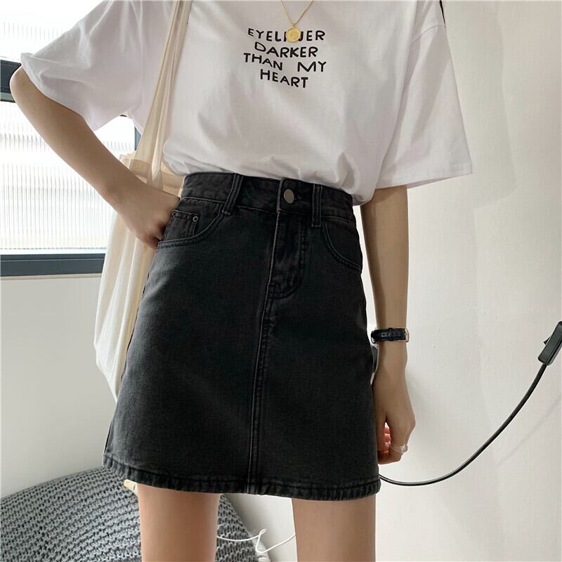 ブラックスカート サマーハイウェストウェストAラインショート 夏物 YY-ファッション74069036842