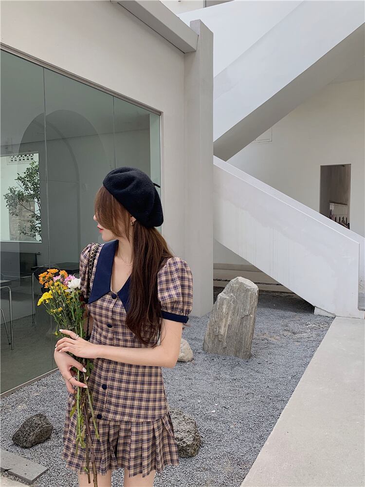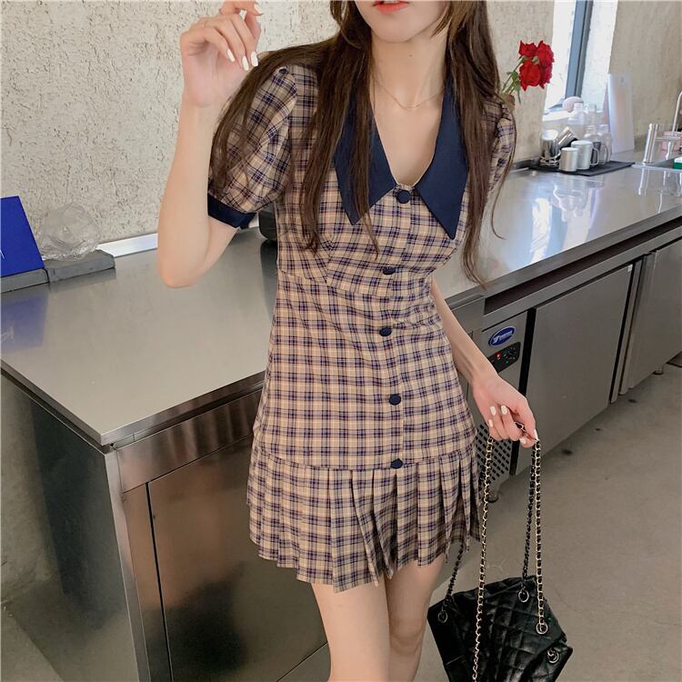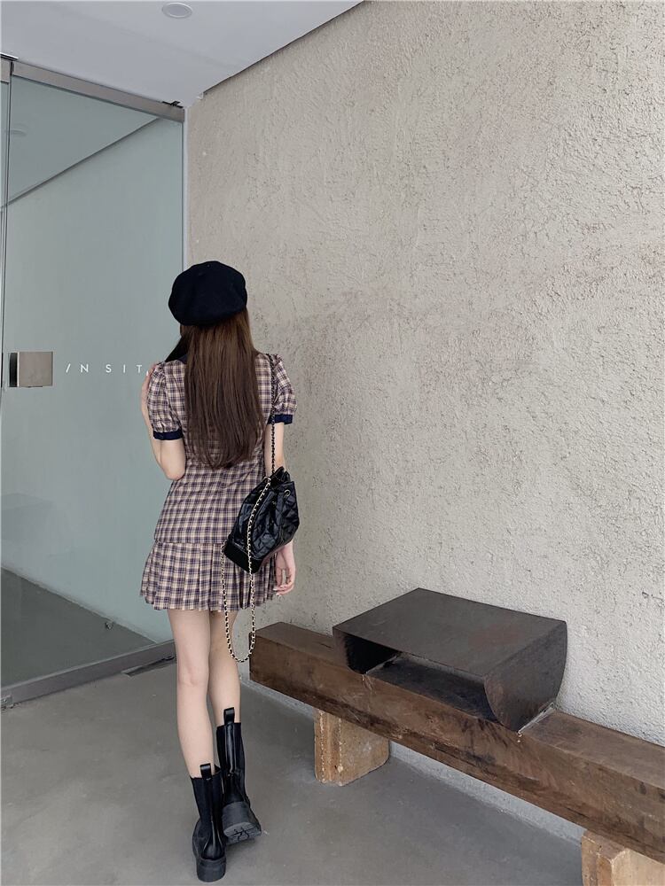 スタンダード格子柄スカート サマーウェストドレス プリーツ レトロ 夏物 ステッチ YY-ファッション23677111593