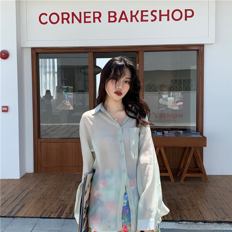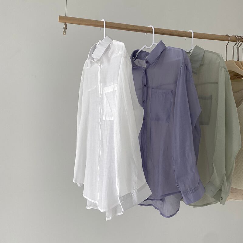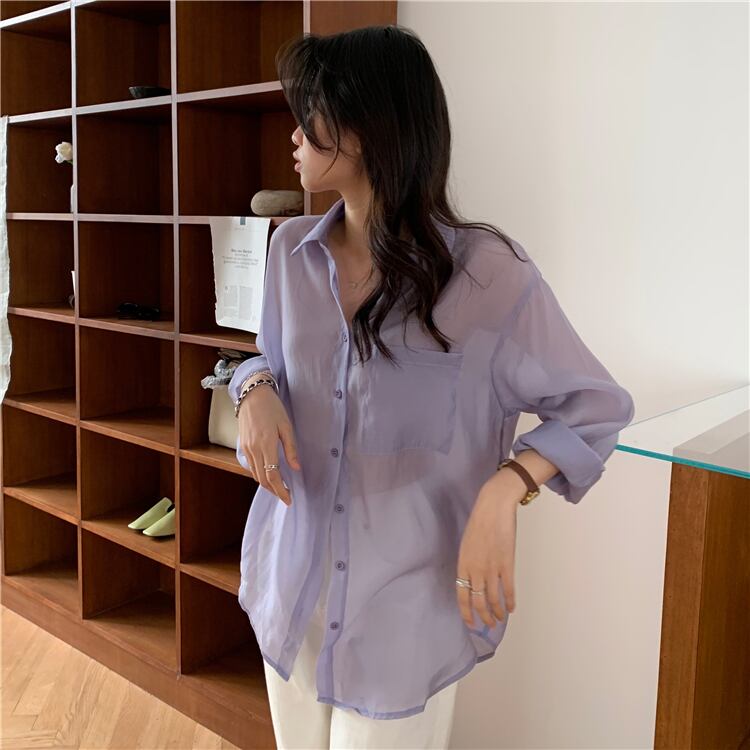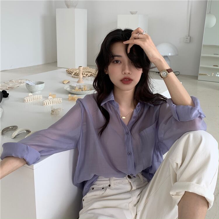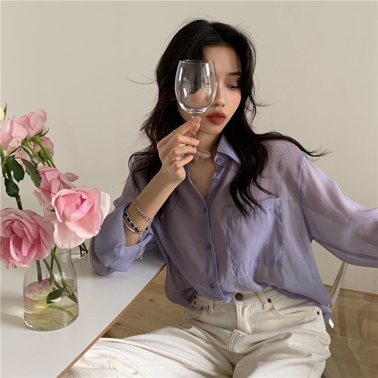 薄手レディースサマースタイルブラウス シャツ ロング 夏物 パープル YY-ファッション13801291380
