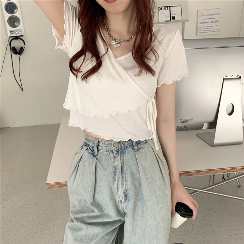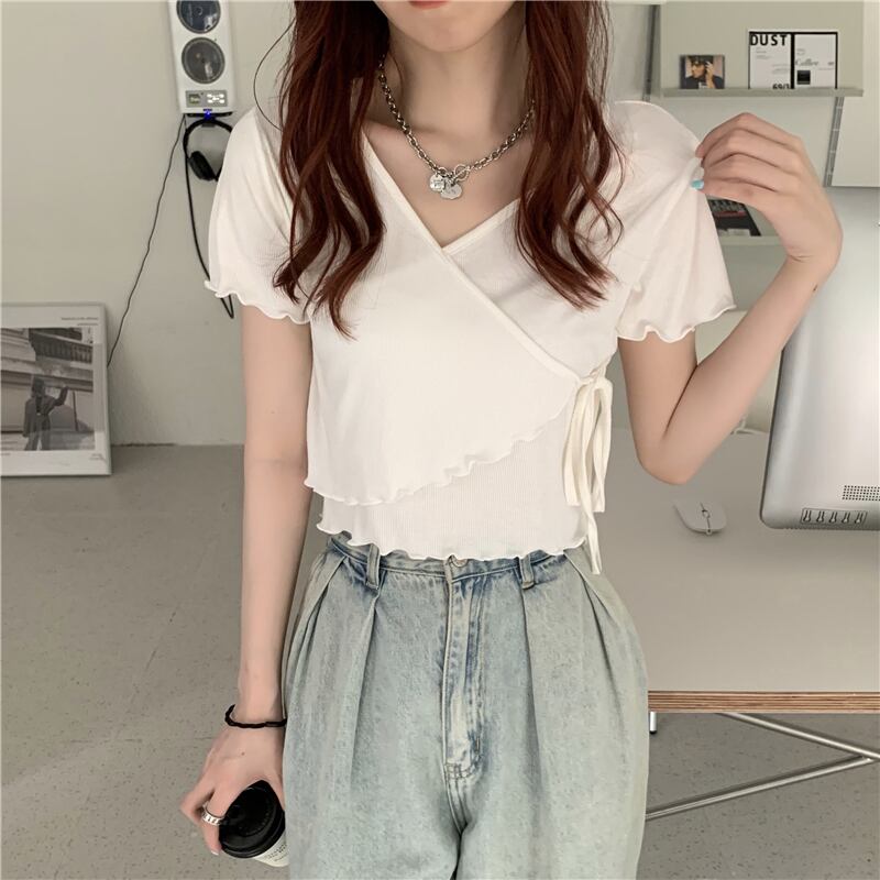 バンドショートTシャツ シャツ レディースサマースタイルスリムトップス 夏物 YY-ファッション80633879574