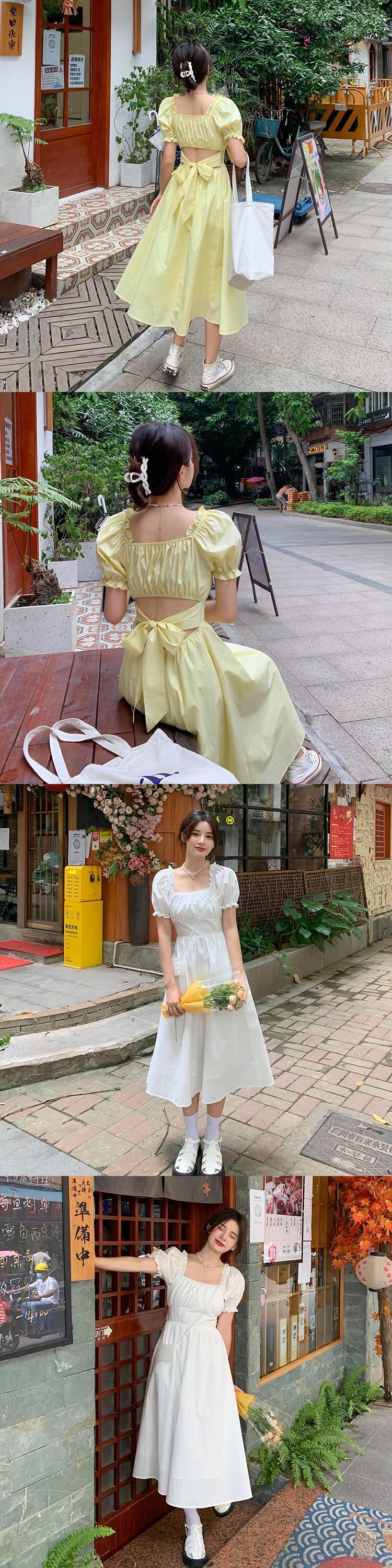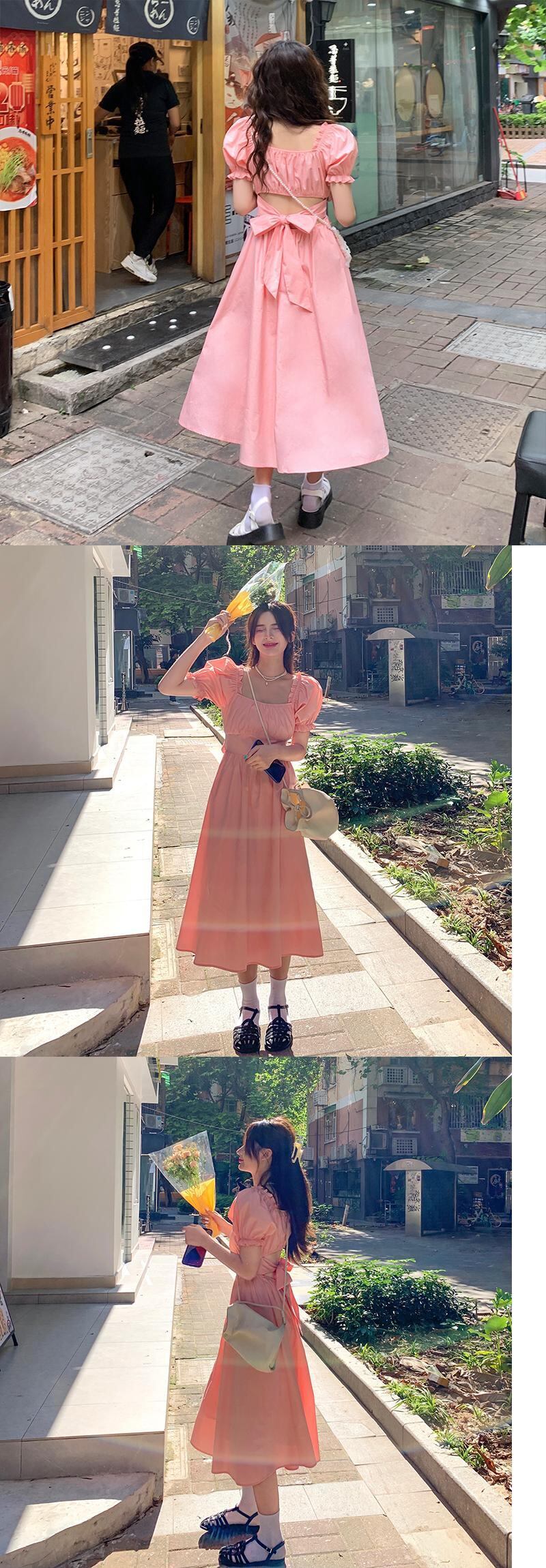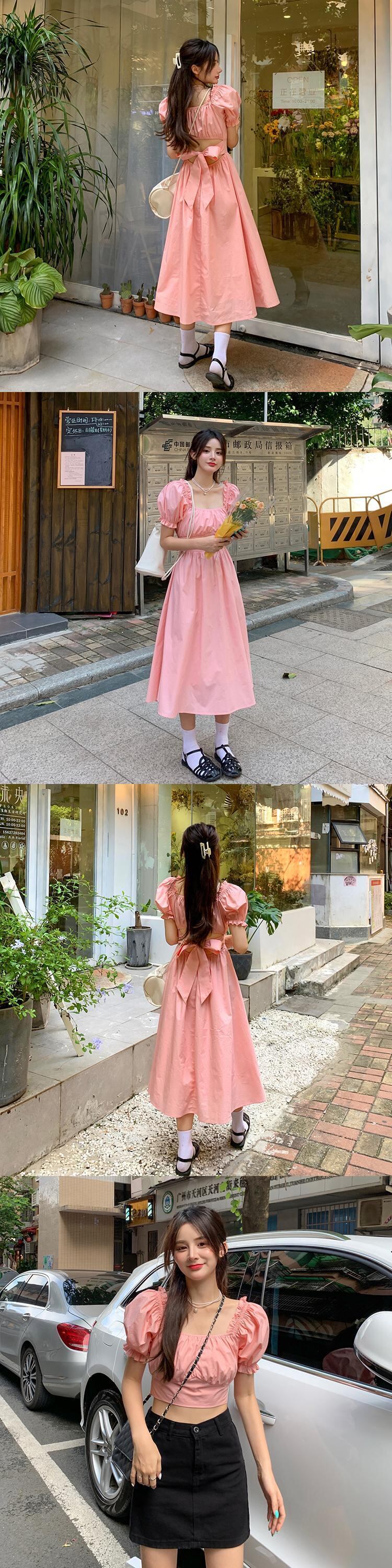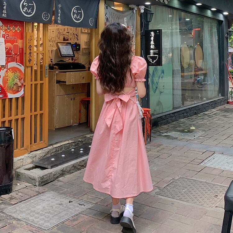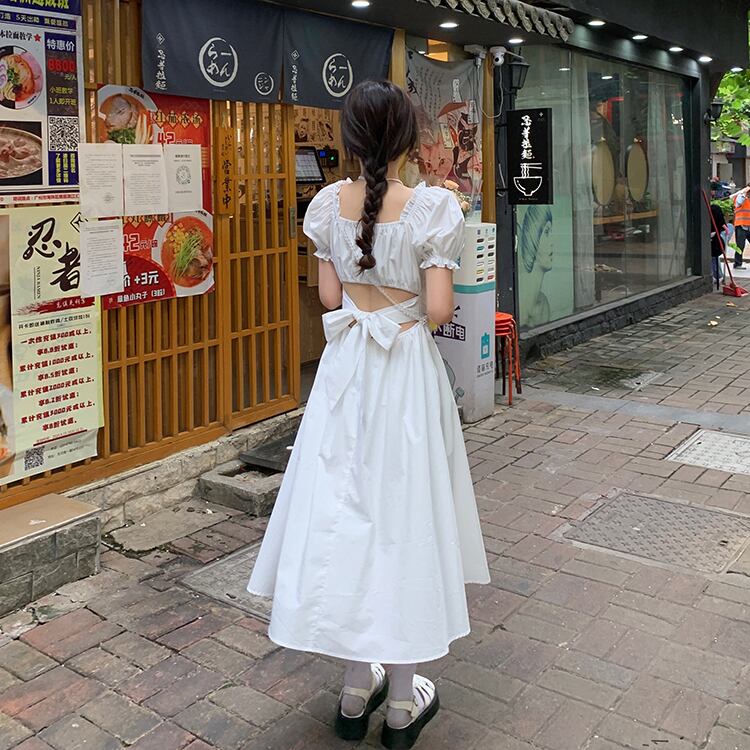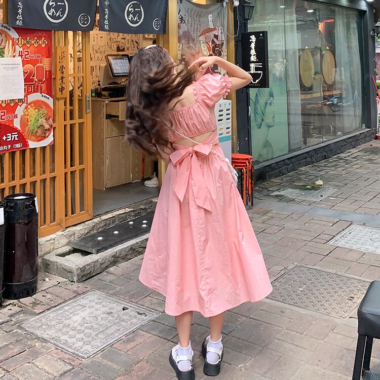 サマースリーブラッフルホルターリボンドレス シャツ 夏物 スクウェア YY-ファッション26029012667