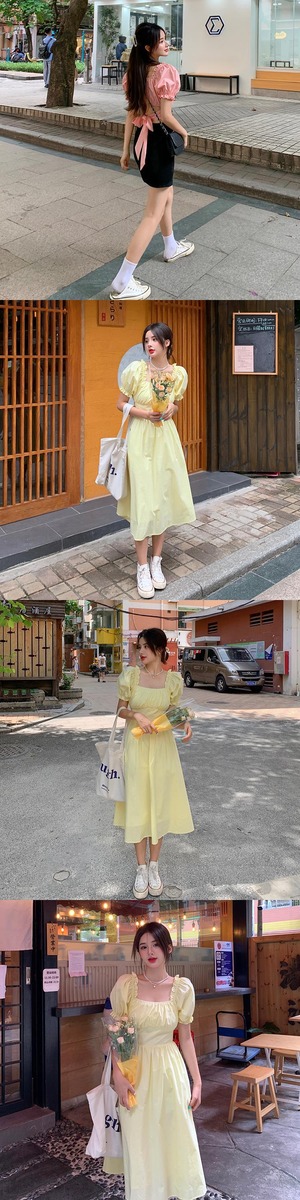 色:黄色のドレス,ピンクのドレス,白いドレス,ピンクトップ
