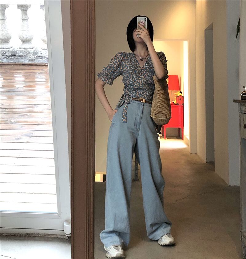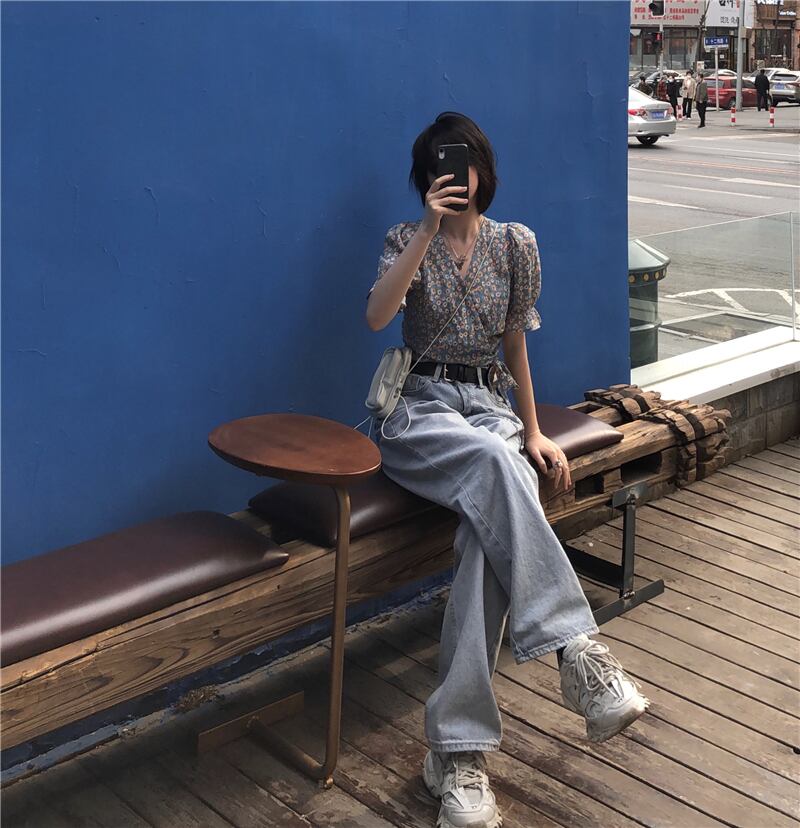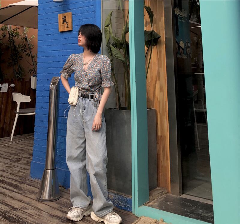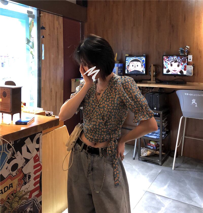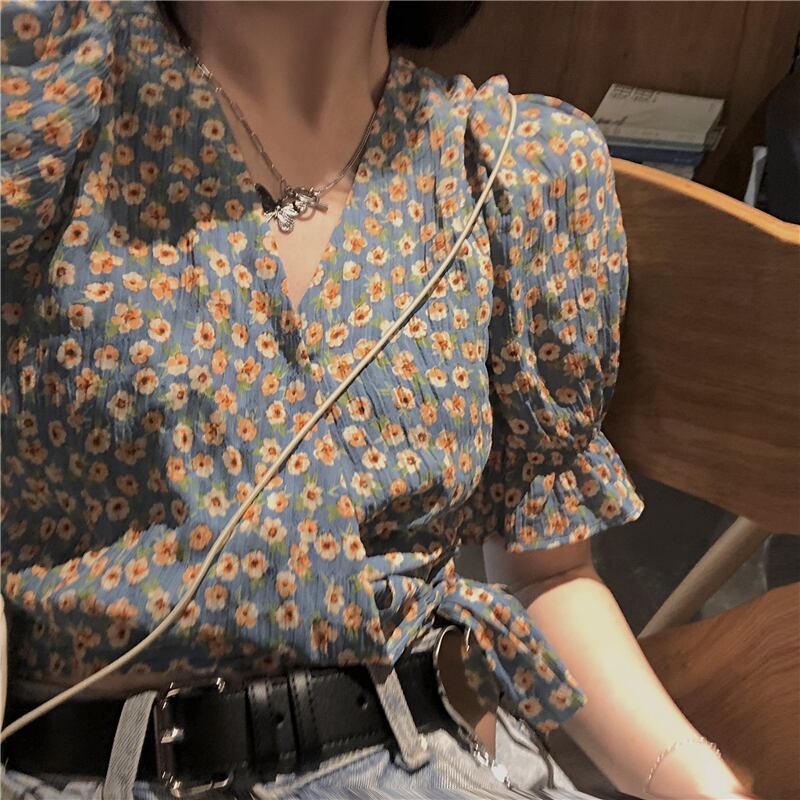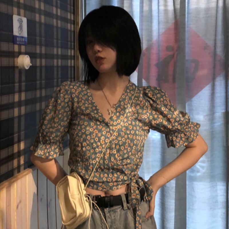ショートフローラルスリーブシャツ レディースサマースタイルスリム 夏物 花柄 YY-ファッション59822766947