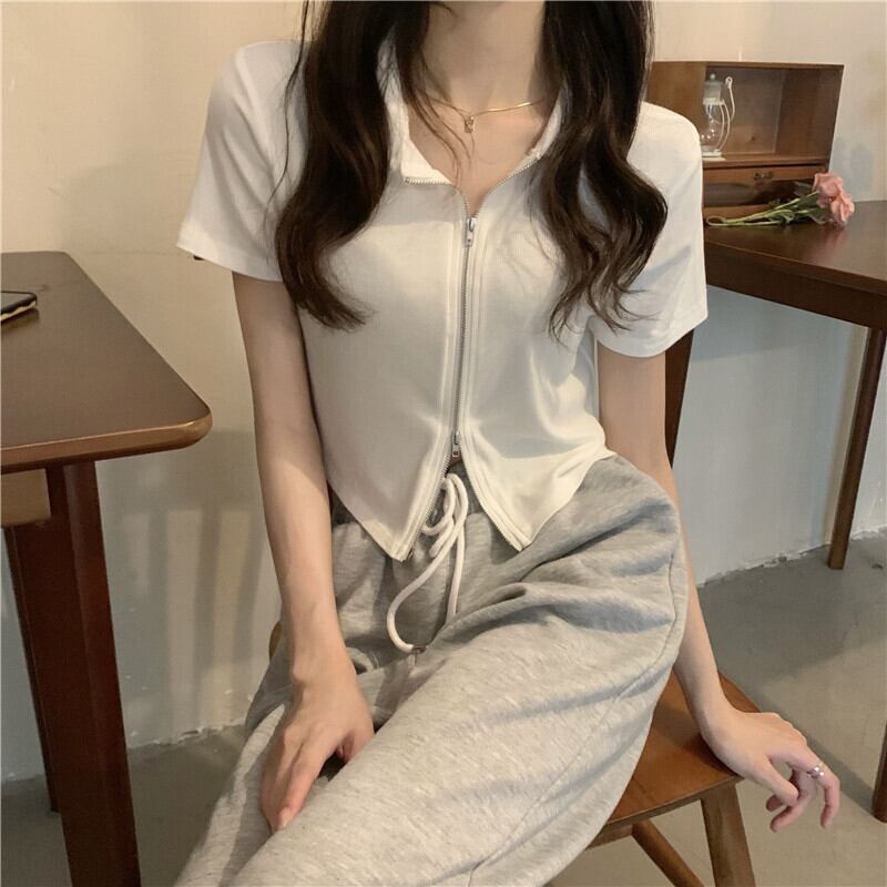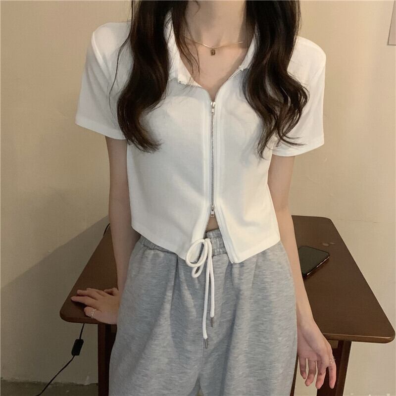 カーディガンジッパーショートTシャツ レディースサマースタイルスリムトップス 夏物 YY-ファッション46942535625