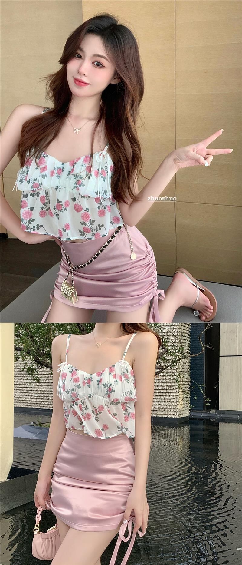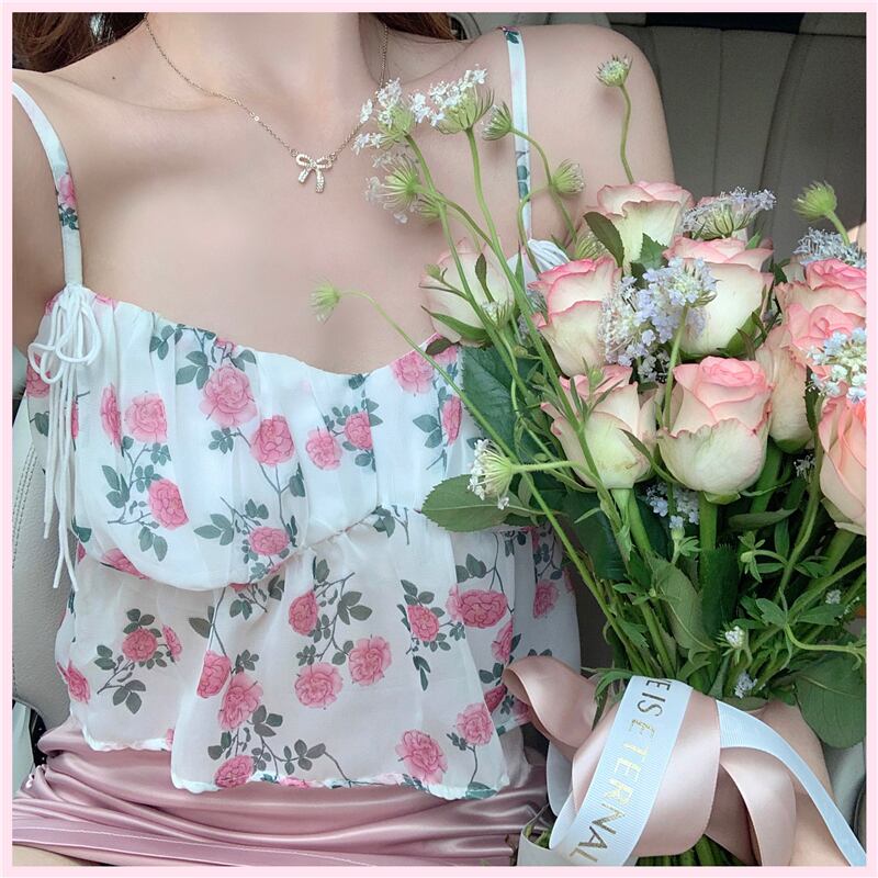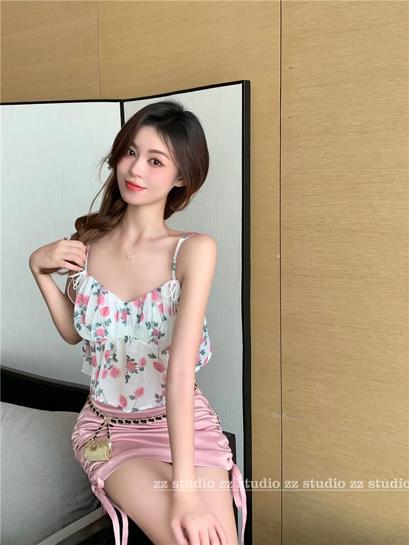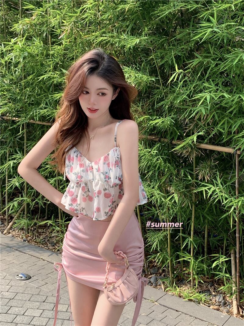 サマーFlowerデザイン トップス サテンギャザーレディース 夏物 ピュア フラワーデザイン YY-ファッション91099006010