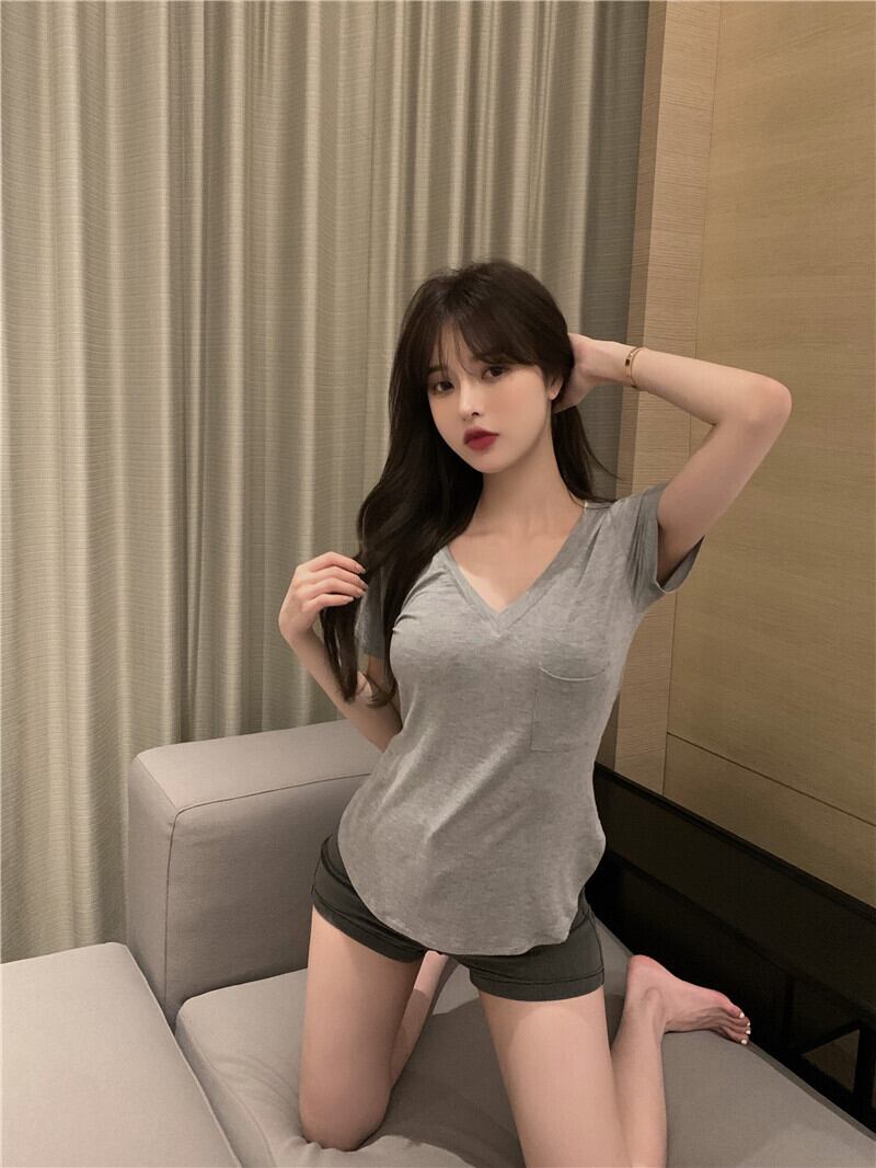 Tシャツ サマーVネックグレートップス 夏物 ピュア YY-ファッション79187443109