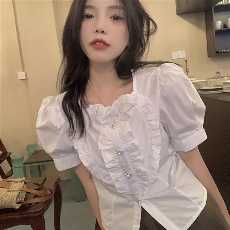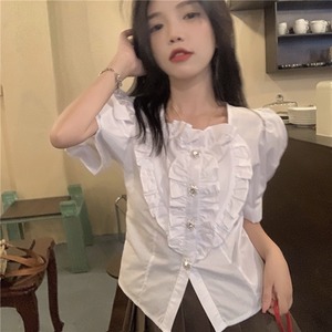 ホワイトシャツ サマースタイルスリーブトップス 夏物 スクウェア YY-ファッション32127399748