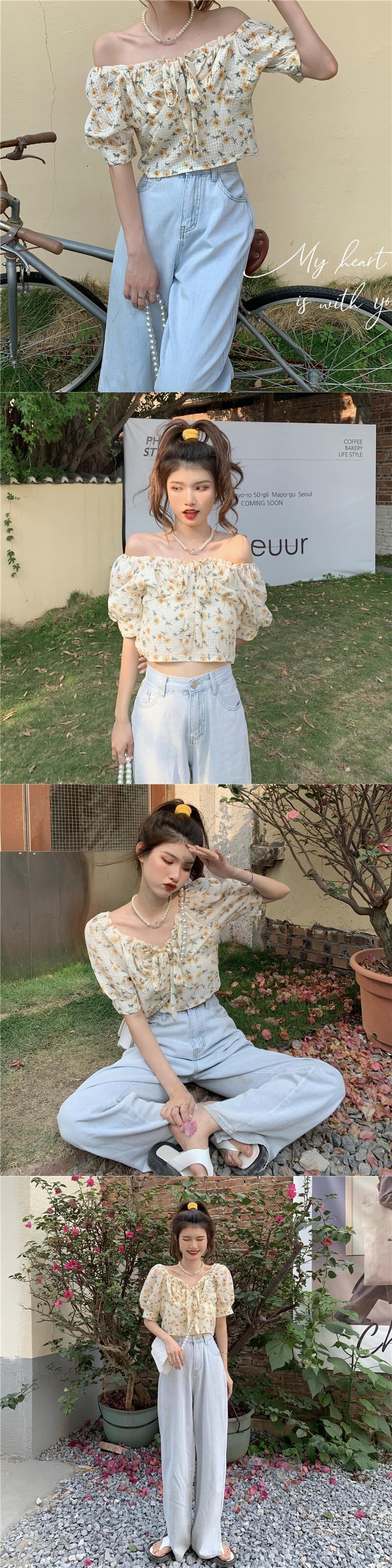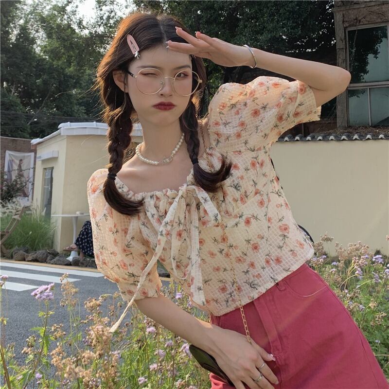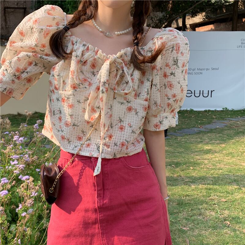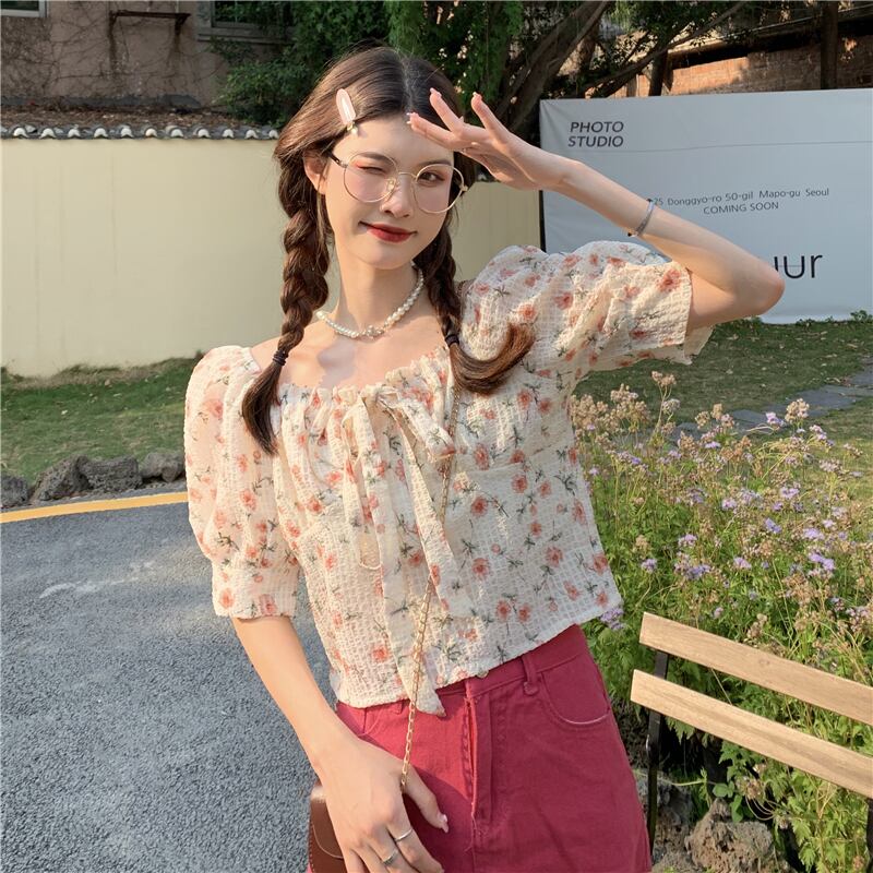 フローラルブラウス シャツ レディースサマースタイルショート 大人ガーリー スウィート キュート カジュアル 夏物 花柄 YY-ファッション79157956165