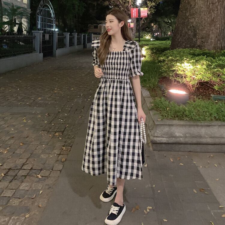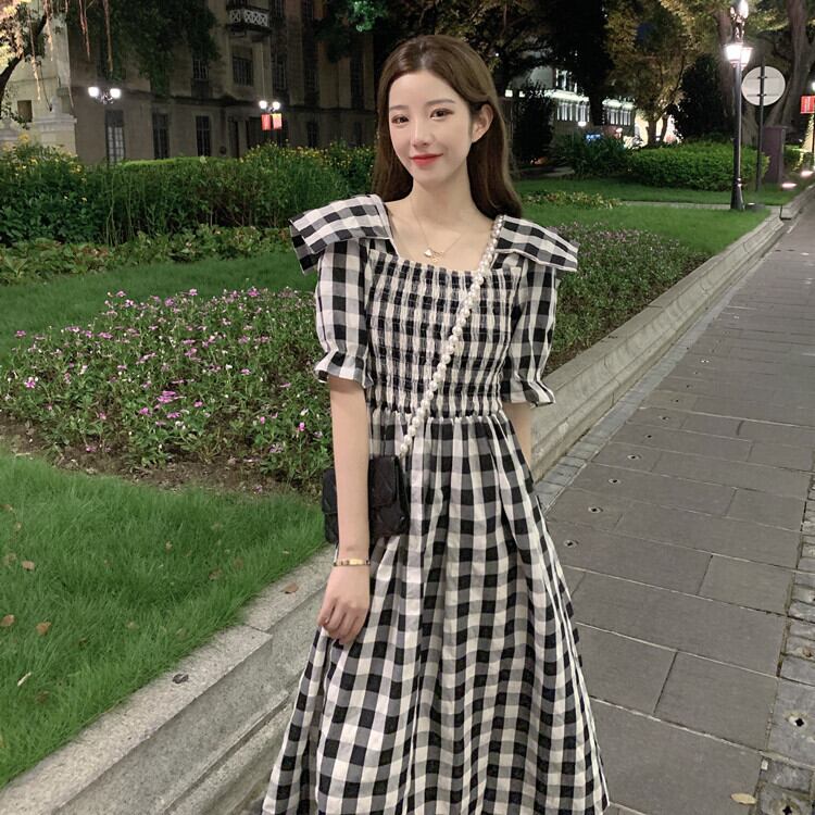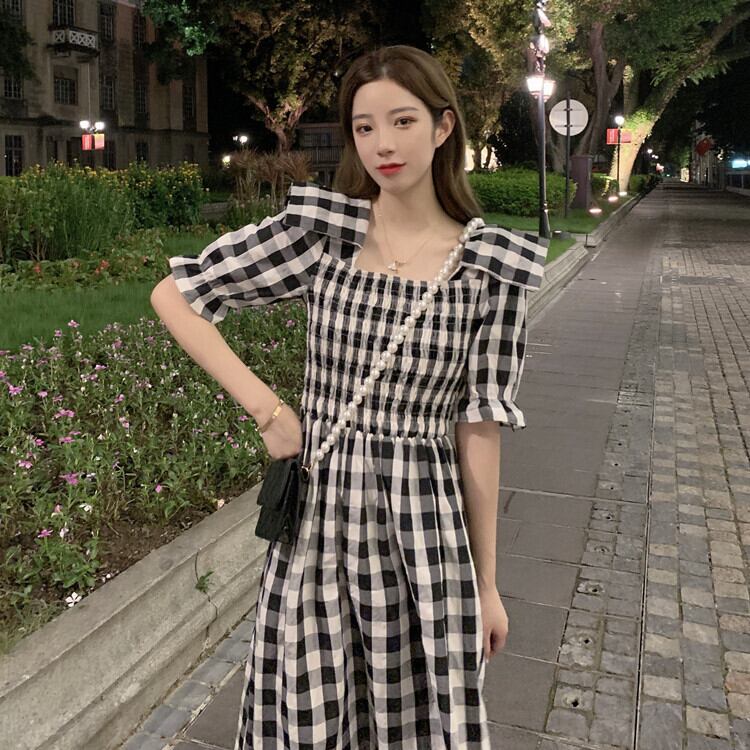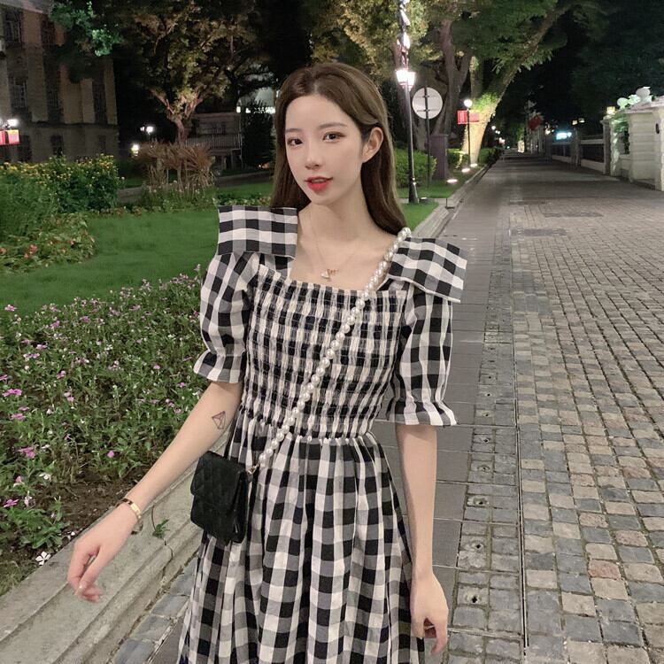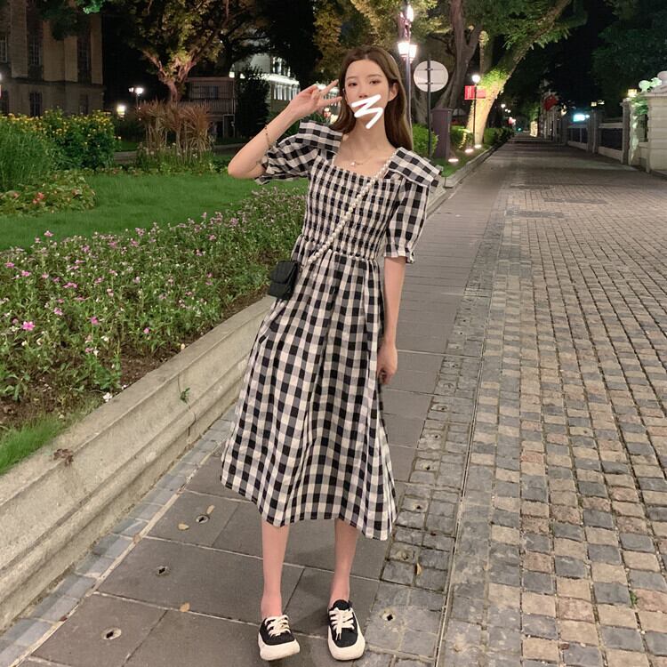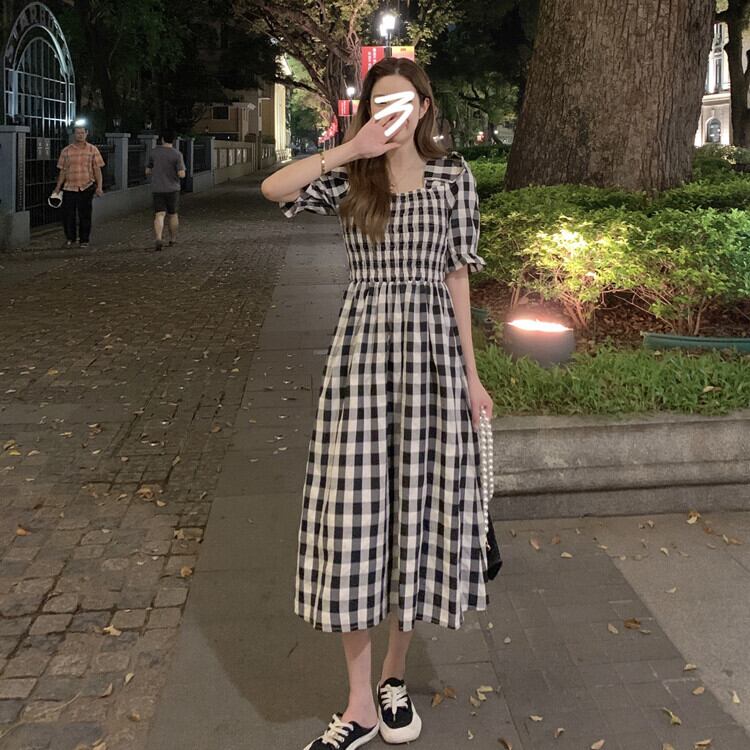 スカート サマー格子柄ロングスリーブ薄手ドレス 大人ガーリー スウィート キュート カジュアル 夏物 スクウェア YY-ファッション19486640758