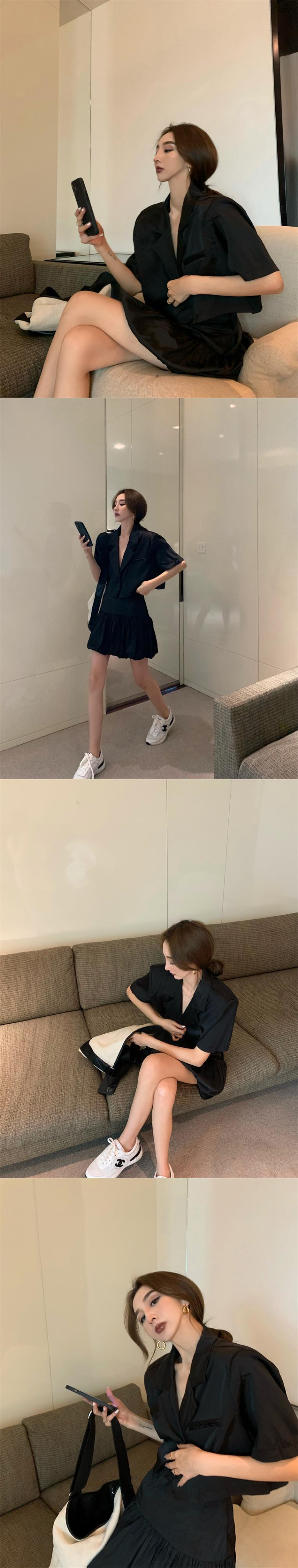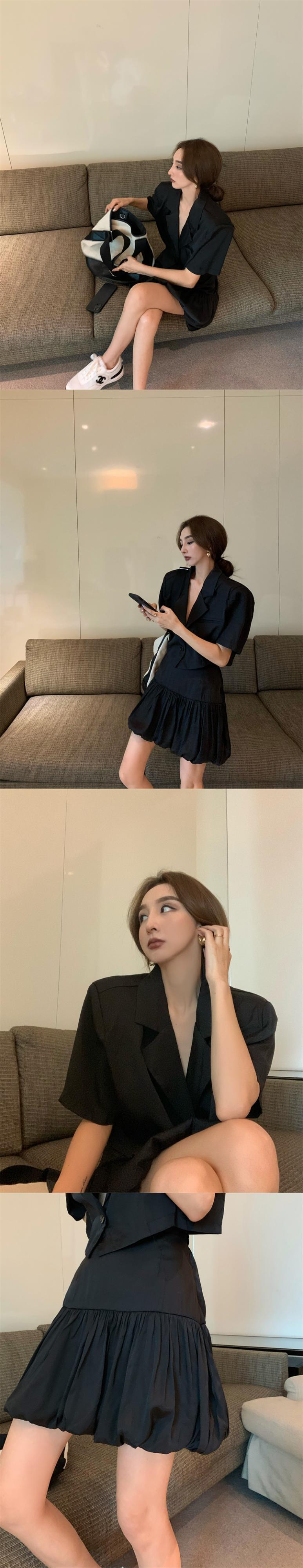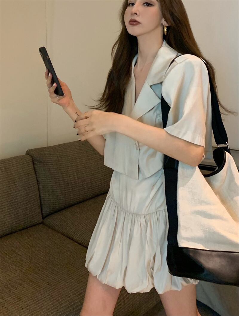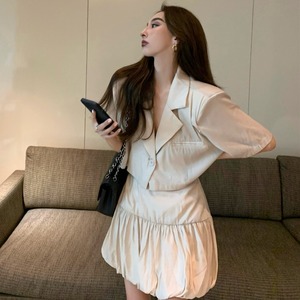 サマースタンダードショートジャケット ハイウェストウェストカジュアルスカート レトロ 夏物 YY-ファッション78430194509