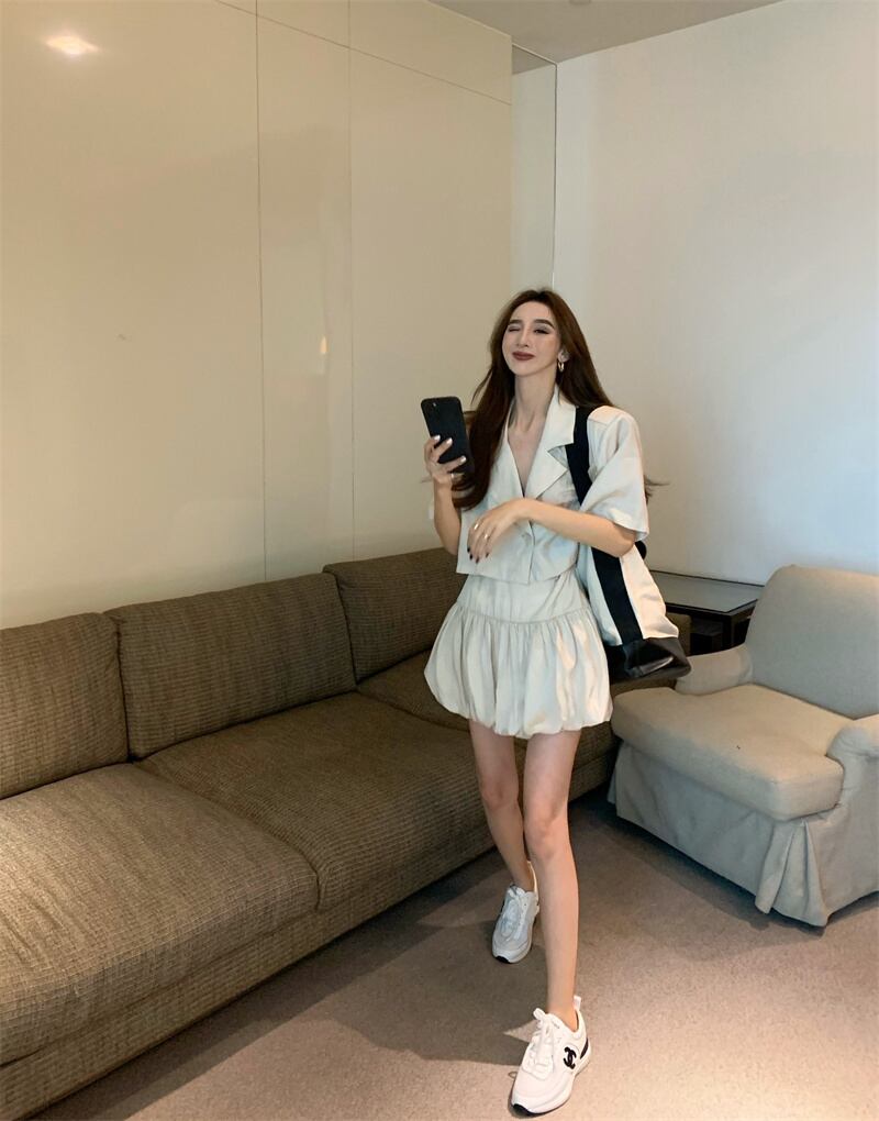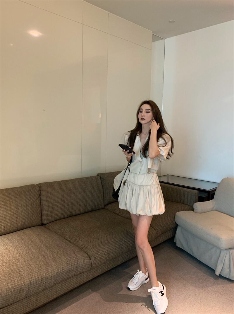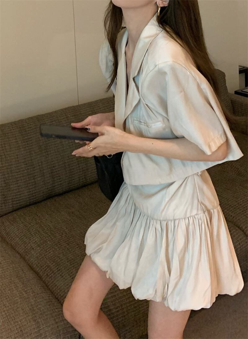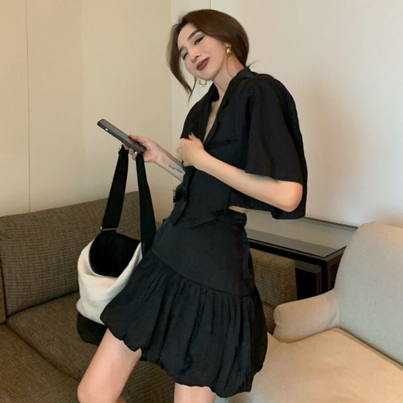 サマースタンダードショートジャケット ハイウェストウェストカジュアルスカート レトロ 夏物 YY-ファッション78430194509