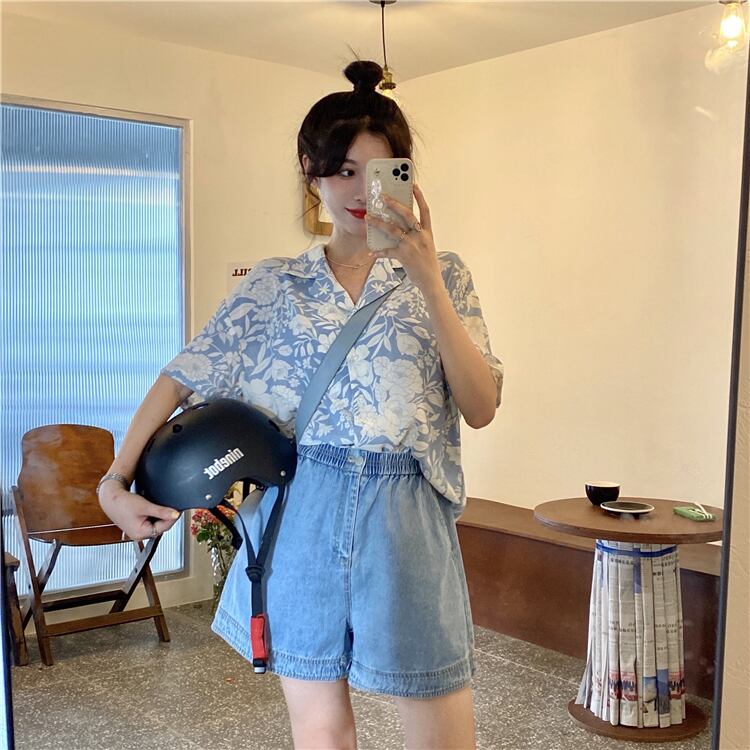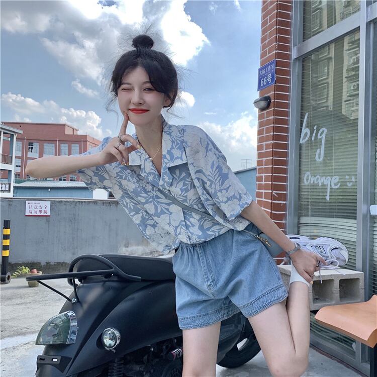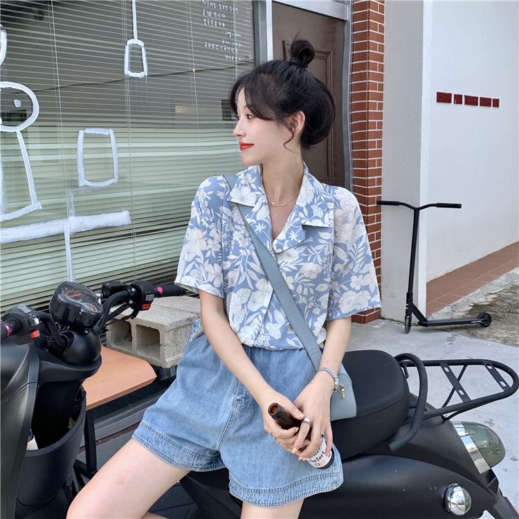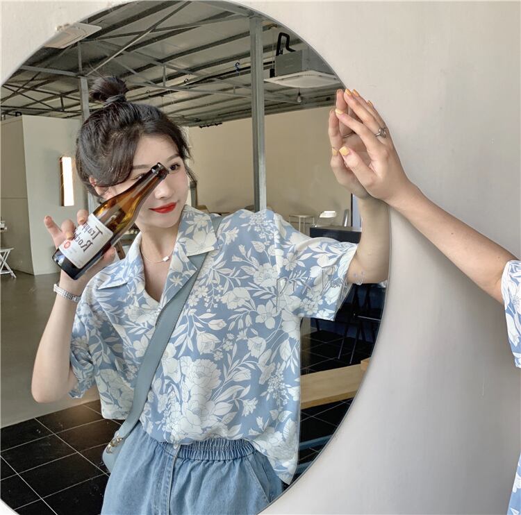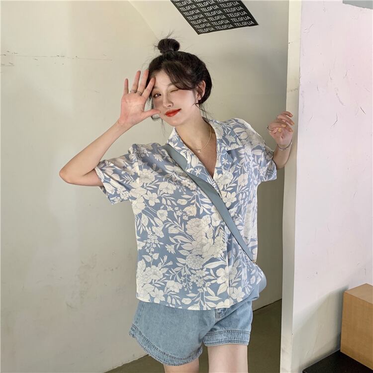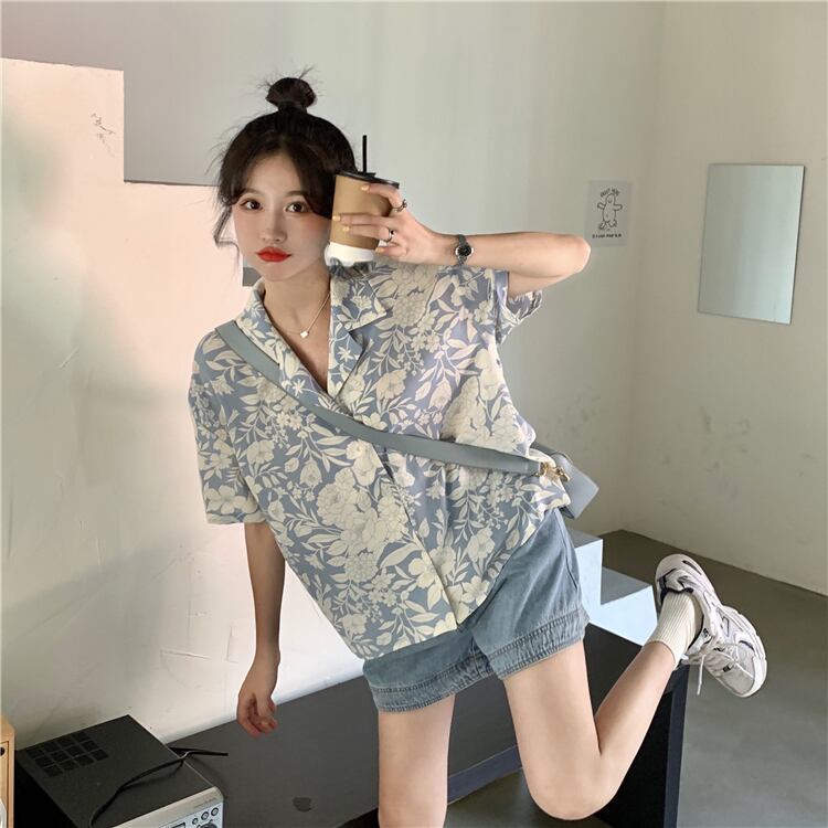 スタイルFlowerデザイン シャツ サマースタンダードルーズシフォントップス レトロ 夏物 フラワーデザイン YY-ファッション22462964344
