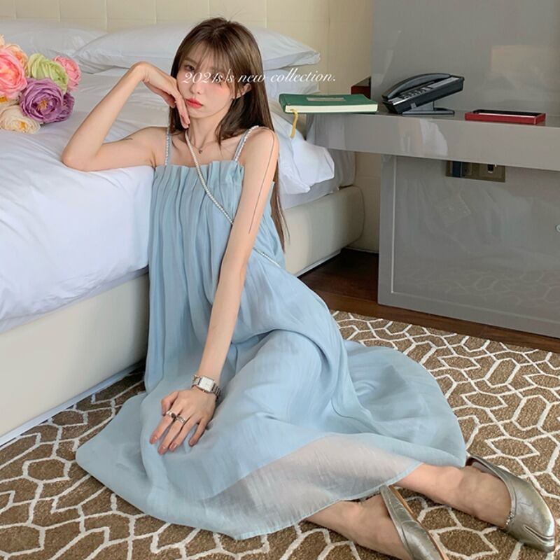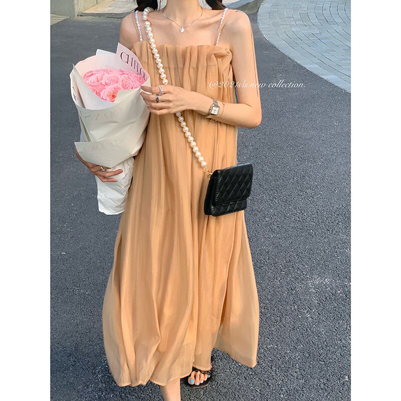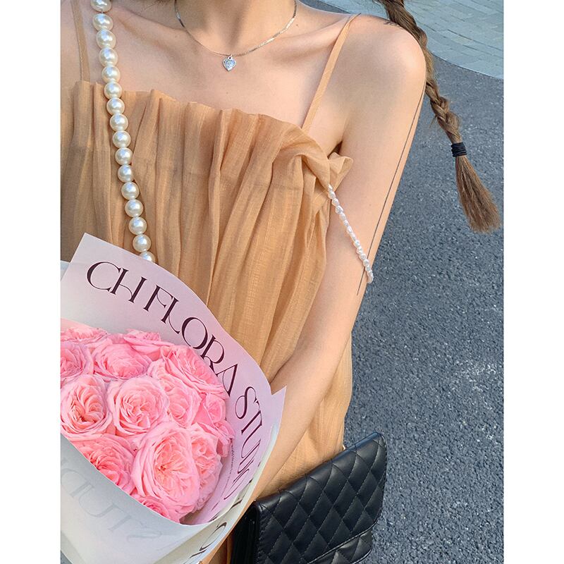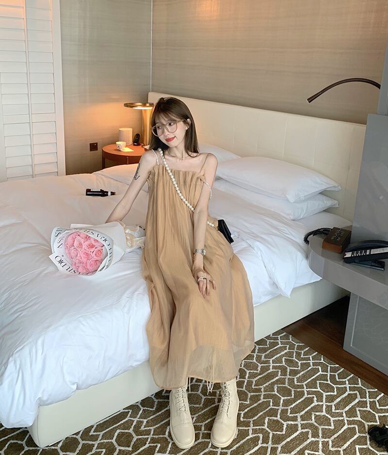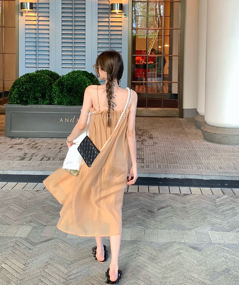 パールチェーン ドレス ルーズ薄手スカート サマートップス 夏物 真珠 YY-ファッション20369151199