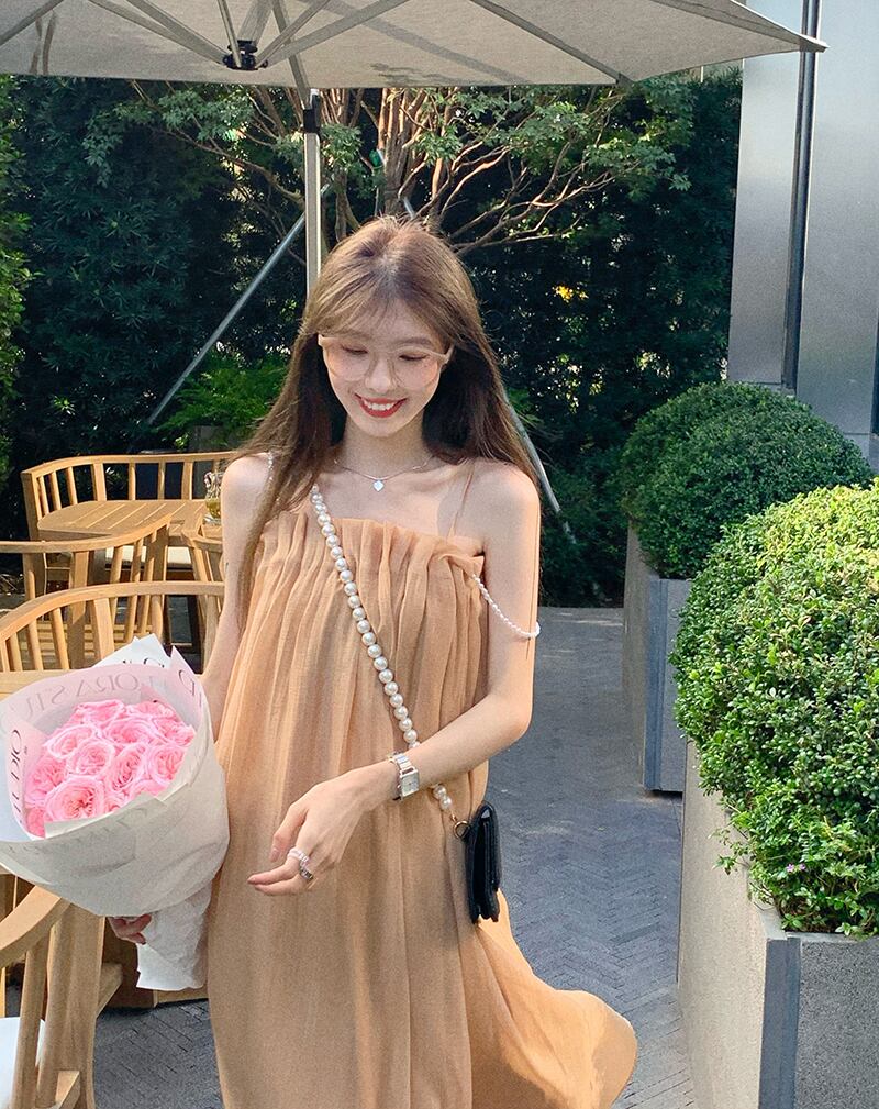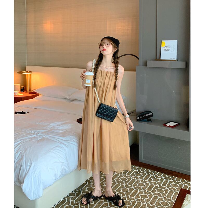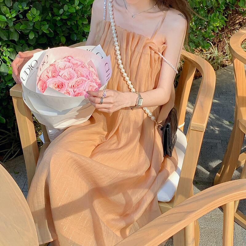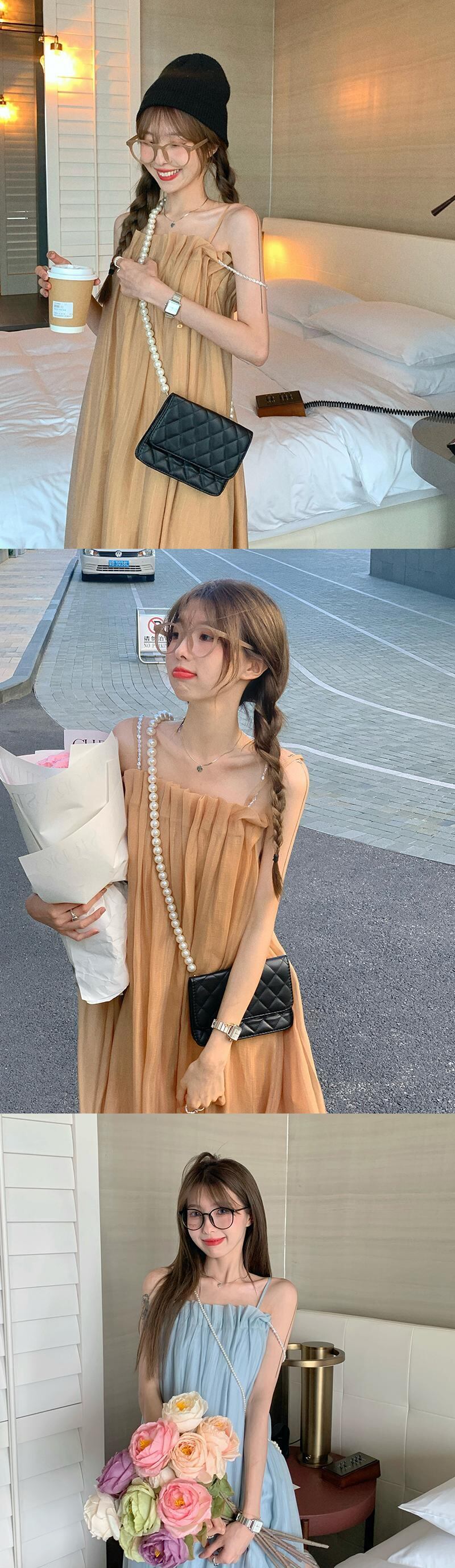 パールチェーン ドレス ルーズ薄手スカート サマートップス 夏物 真珠 YY-ファッション20369151199