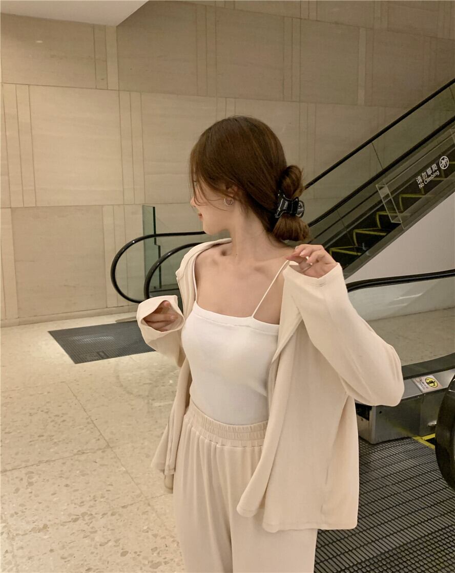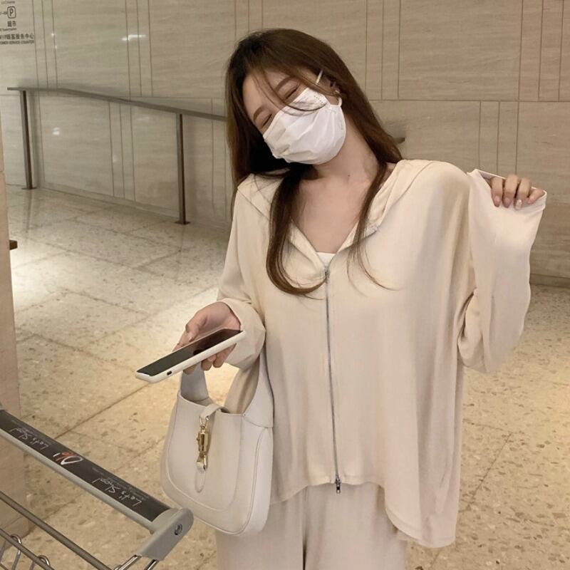薄手レディースサマーコート ルーズジッパーフードカジュアルカーディガントップス 夏物 YY-ファッション12896074640