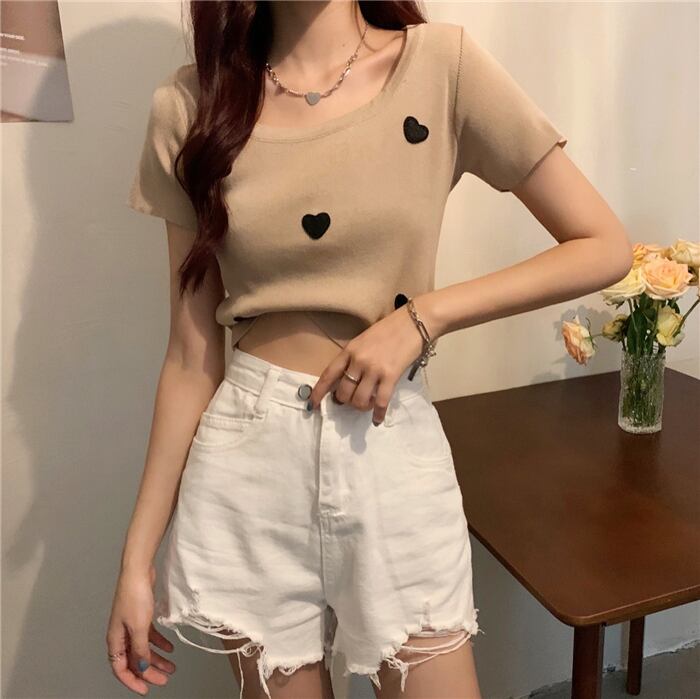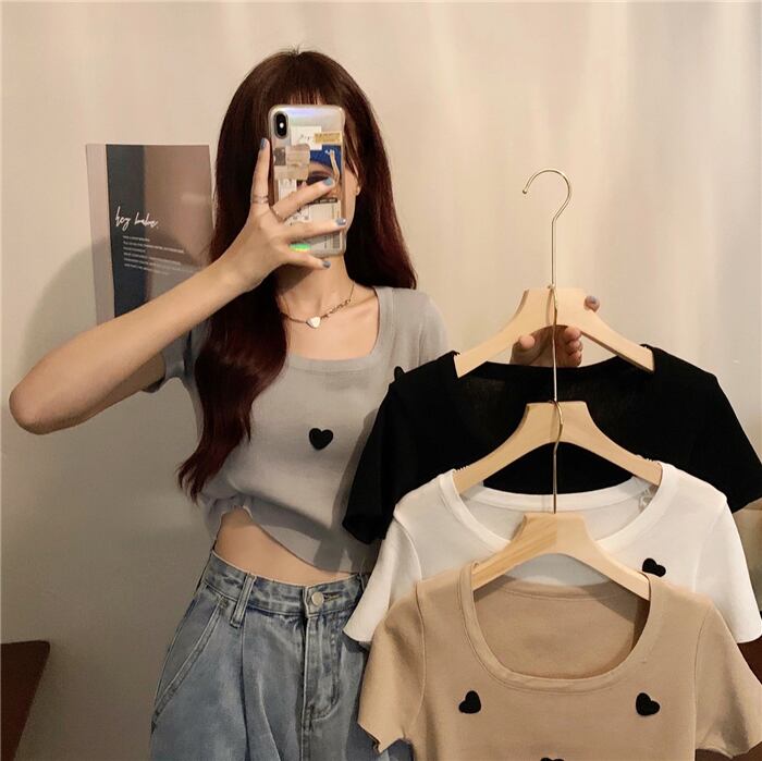 Tシャツ シャツ ショートサマーホワイトスリムニットトップス 夏物 スクウェア YY-ファッション19661930569