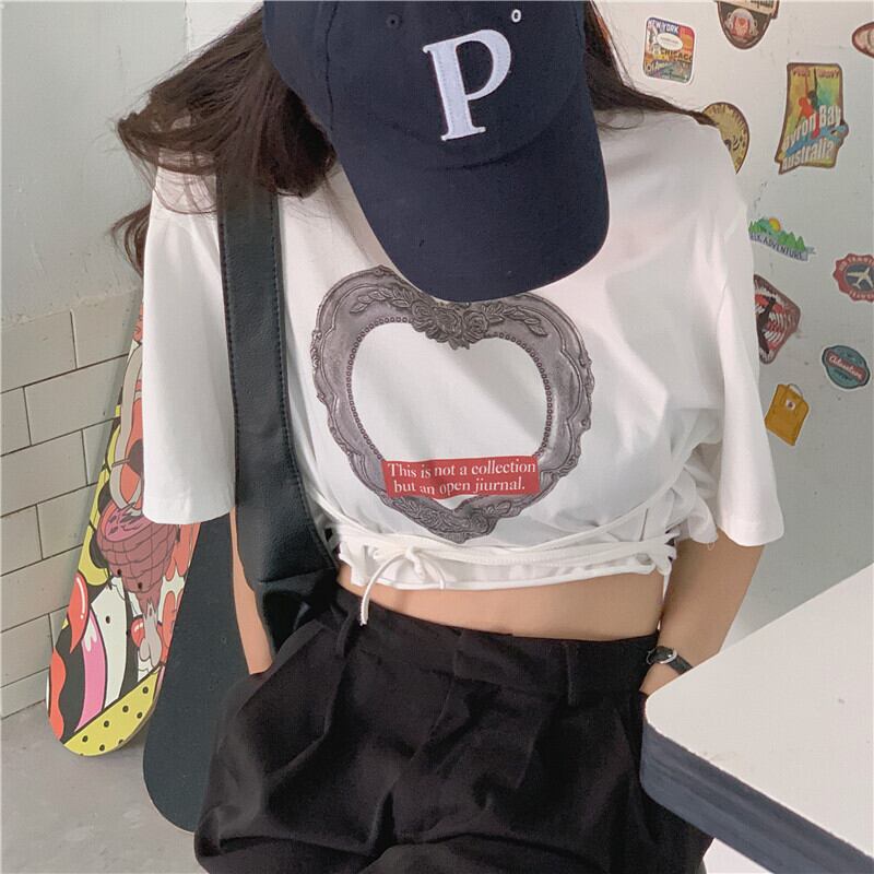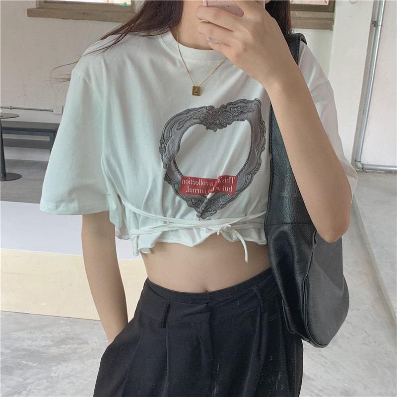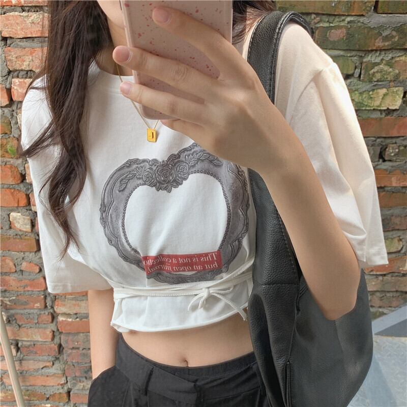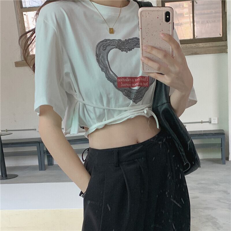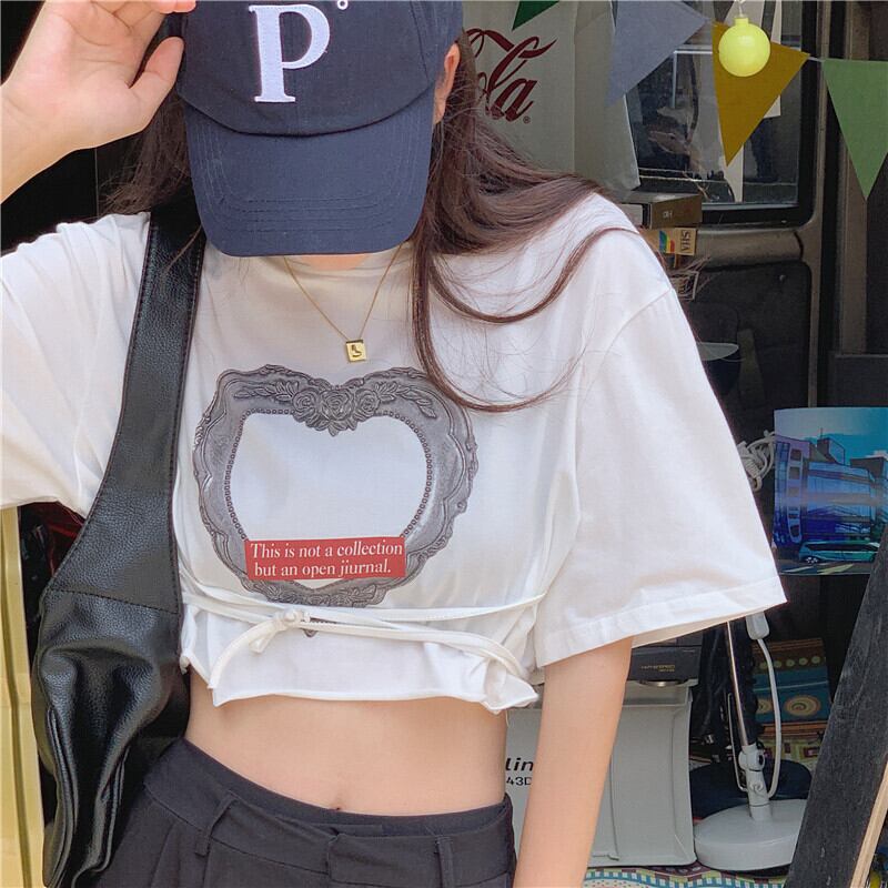 ショートクロップドTシャツ レディースサマースタイルカジュアルトップス レース 夏物 レースアップ YY-ファッション52423080331