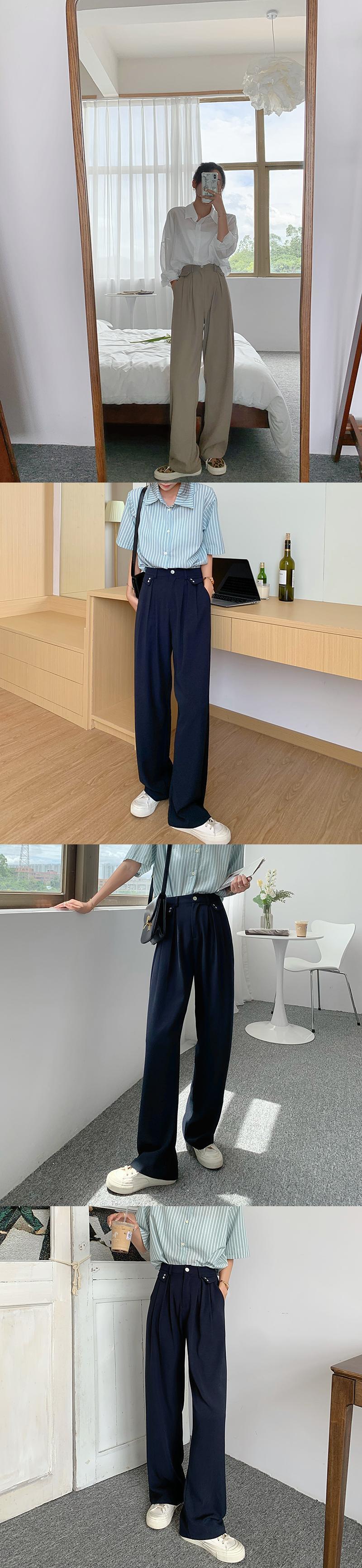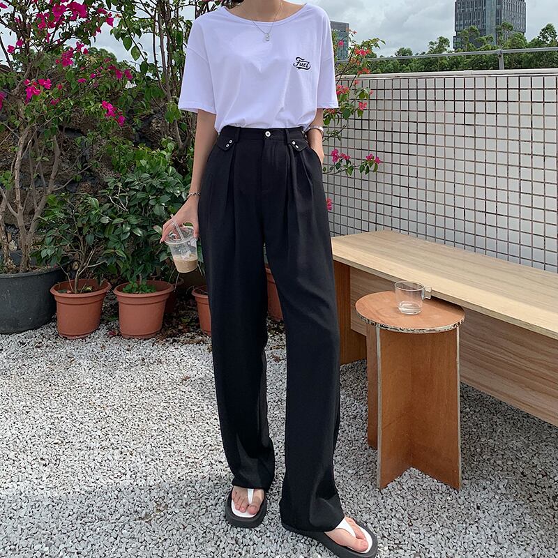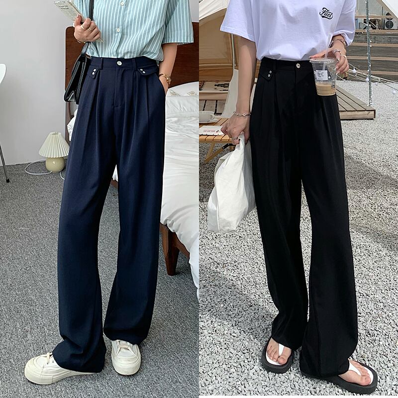 パンツ サマー薄手ソリッド カラールーズワイドレッグハイウェストウェスト 夏物 ワイドパンツ ソリッドカラー YY-ファッション4641086129