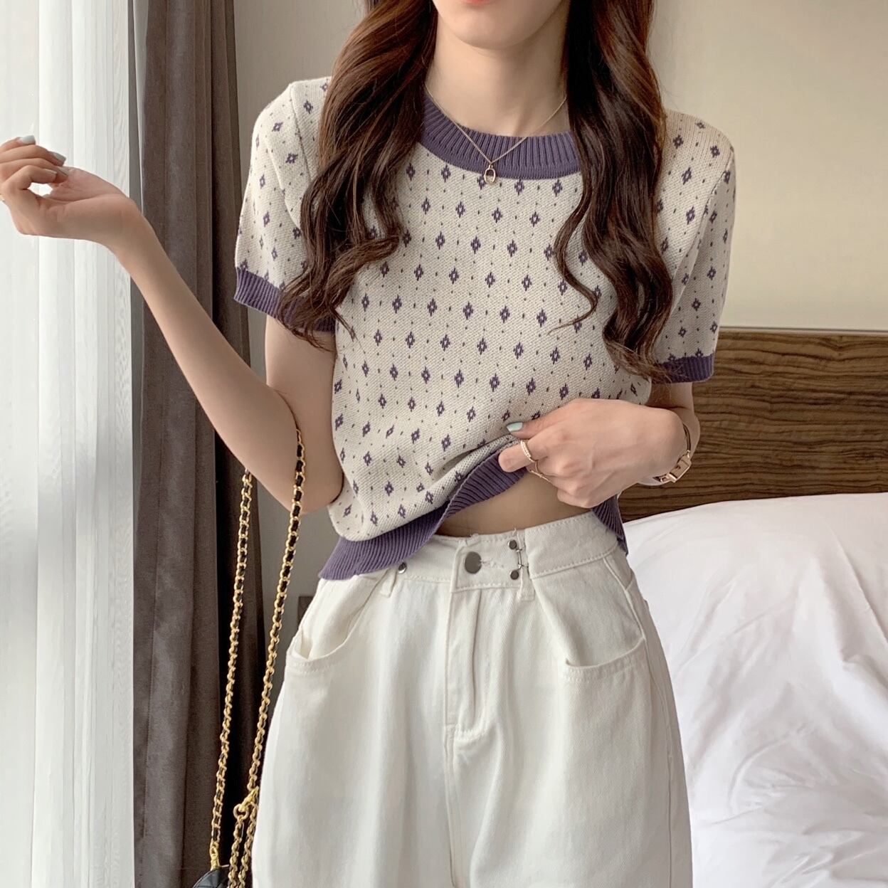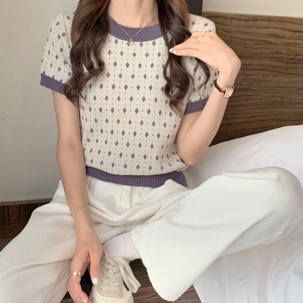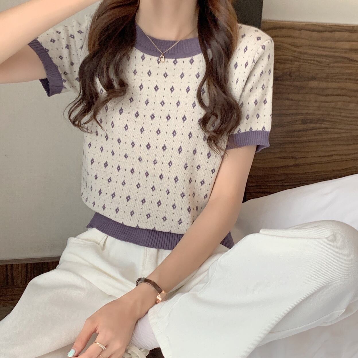 Tシャツ 薄手サマースタイルニットカジュアルスリムショートトップス 大人ガーリー スウィート キュート 夏物 YY-ファッション65687530781