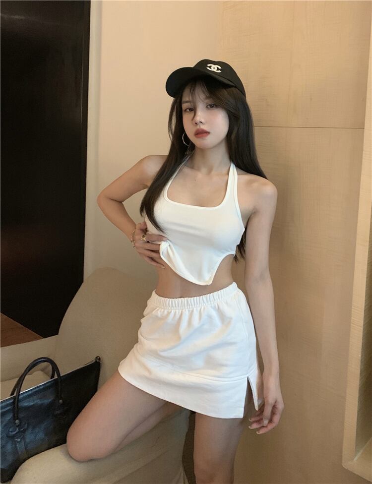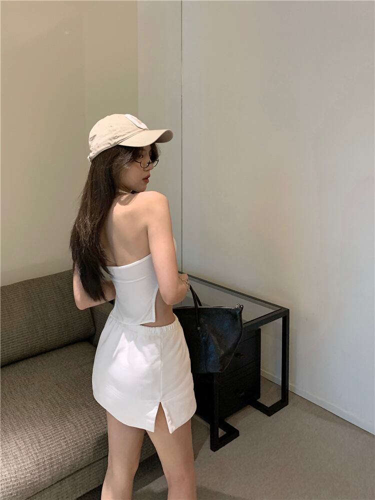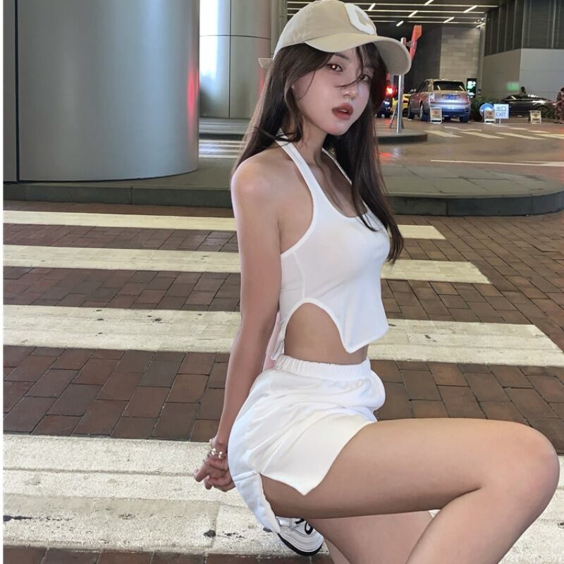 サマーホワイトホルタートップス 大人ガーリー スウィート キュート カジュアル 夏物 ピュア YY-ファッション41703529674