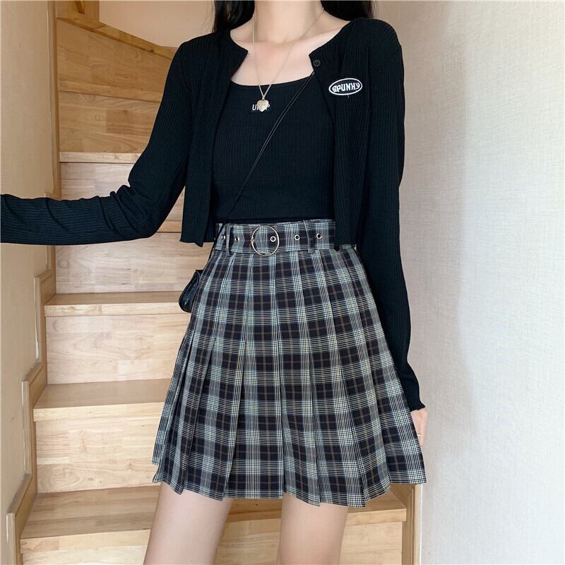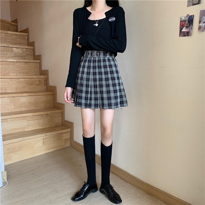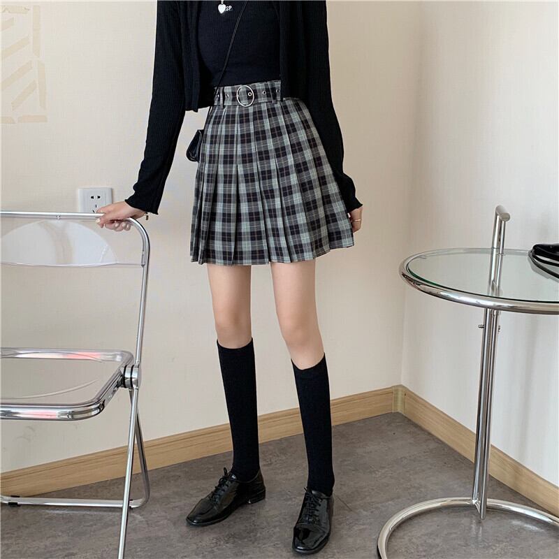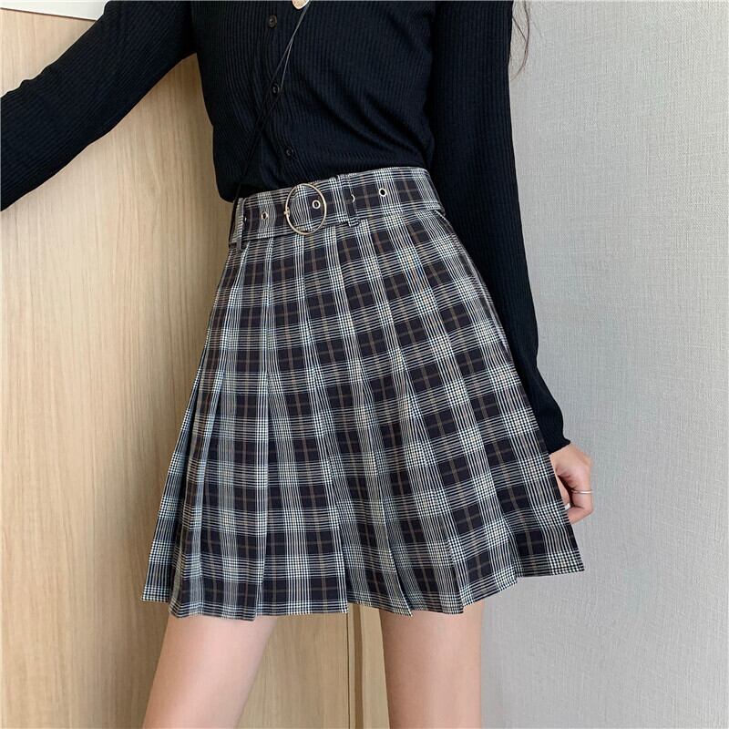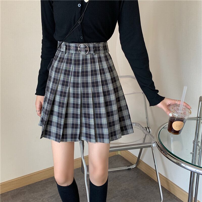 サマーショートスカート ハイウェストウェスト格子柄Aラインプリーツ 夏物 YY-ファッション45164077060