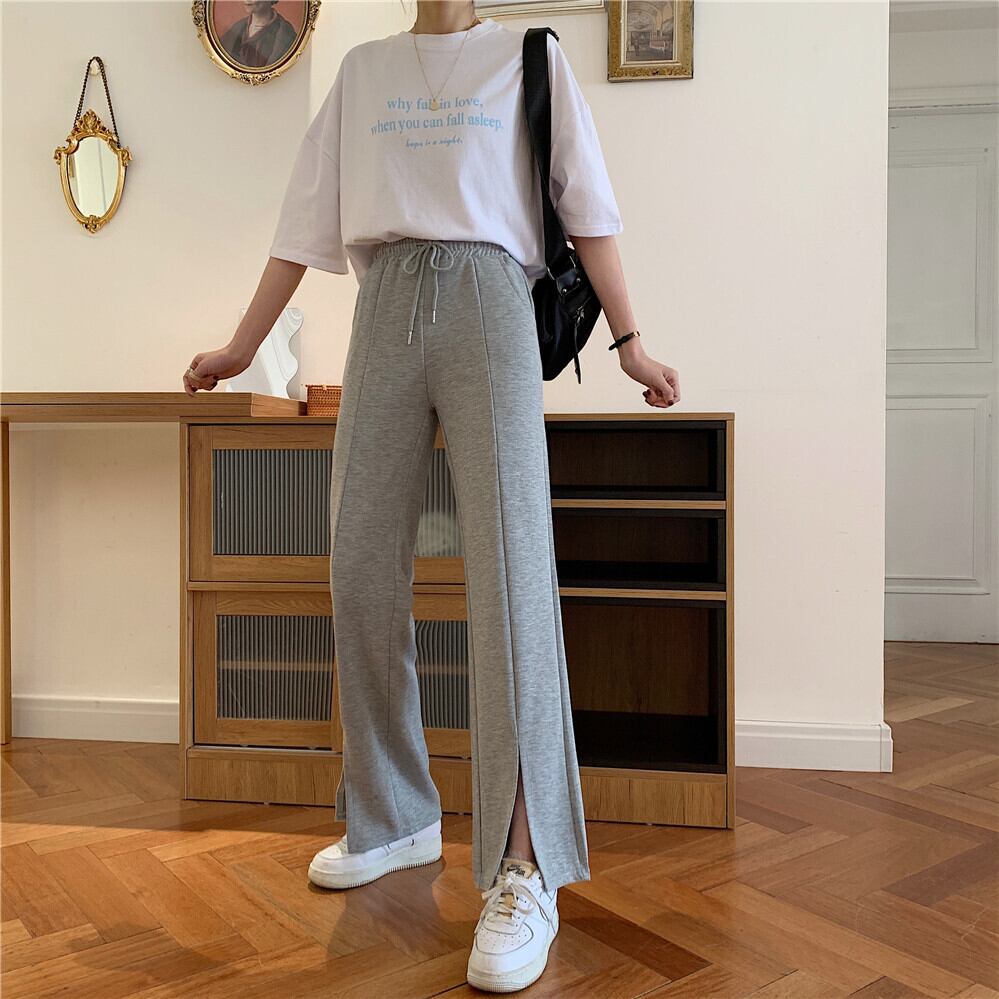 グレーパンツ サマーハイウェストルーズカジュアル 夏物 YY-ファッション67627253292