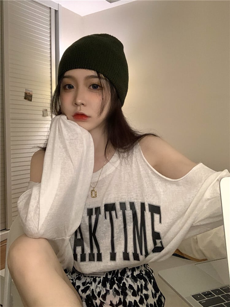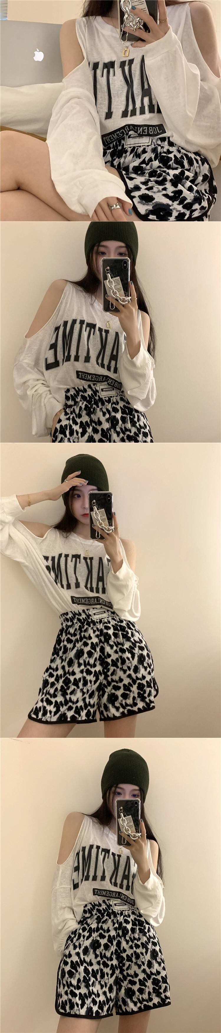 サマールーズストラップレスプリント柄長袖スリーブTシャツ ウェストレオパードショーツ レディース ロング 夏物 ブルマー YY-ファッション47996157667