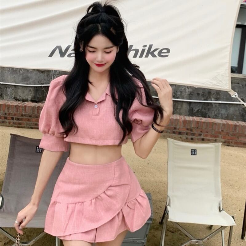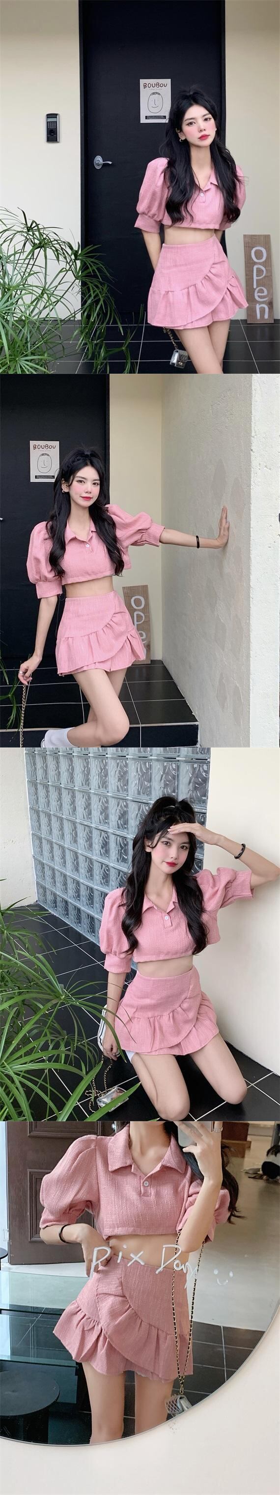 色:ピンクトップ,アプリコットトップ,ピンクのスカート,アプリコットスカート
