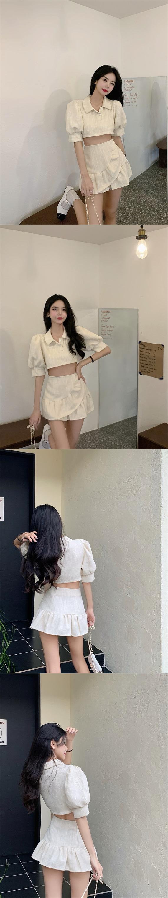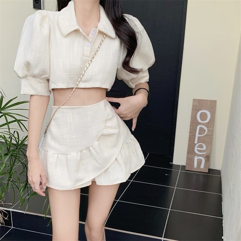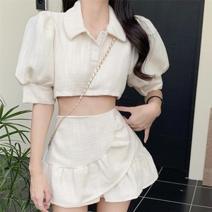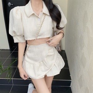 スタンダードスタイルサマースリーブショートトップス Aラインスカート レトロ 夏物 YY-ファッション95394102076
