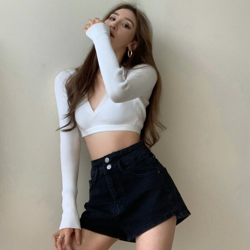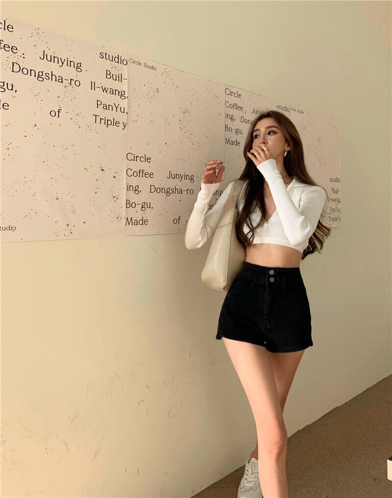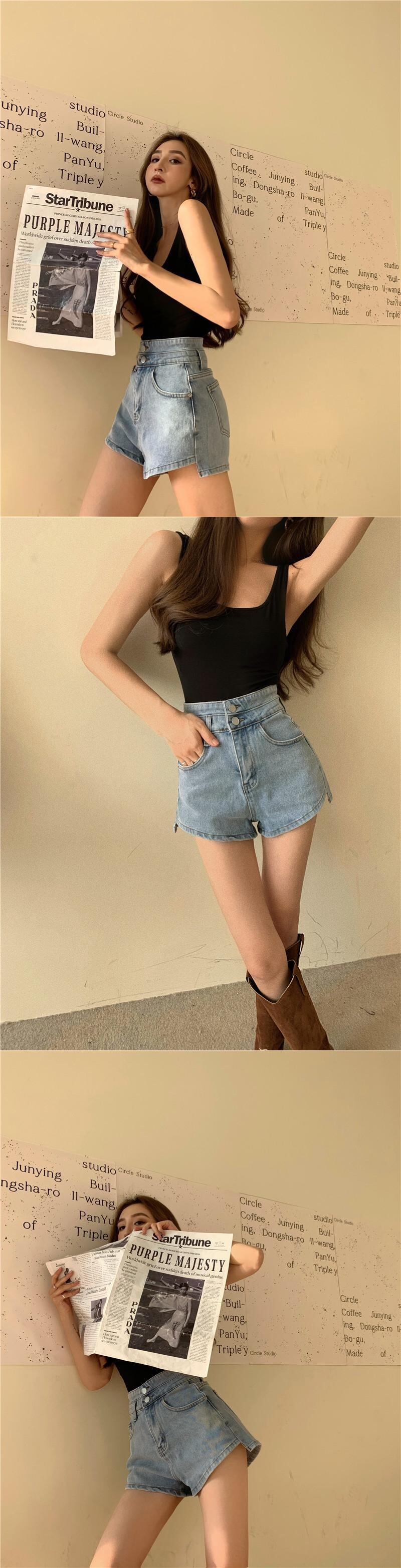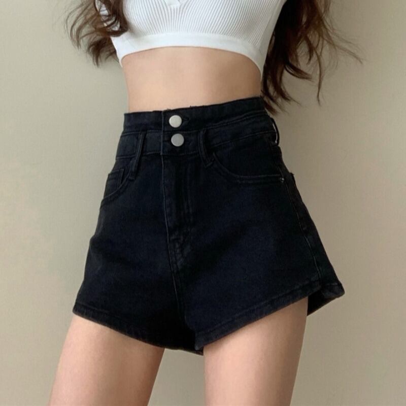 パンツ レディースブラック薄手ハイウェストウェストロングジーンズ ショーツ ブルマー YY-ファッション25253834727