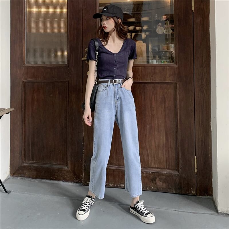 ジーンズ サマーハイウェストウェストスリムルーズクロップド レッド 夏物 YY-ファッション89929928173