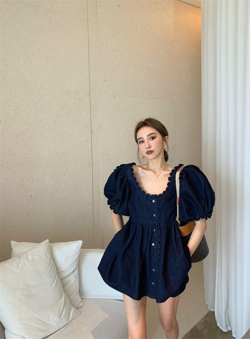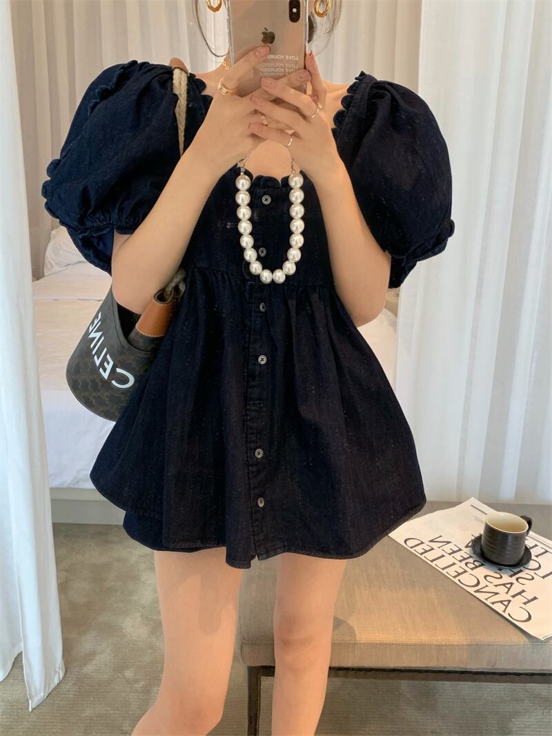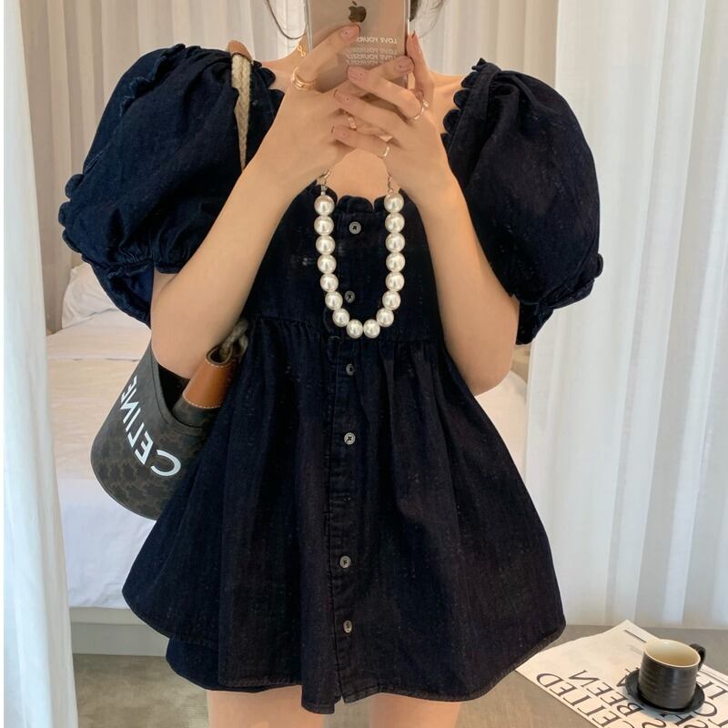 ブルーシャツ スタンダードスリーブサマーウェストトップス レディース レトロ 夏物 YY-ファッション64356208408