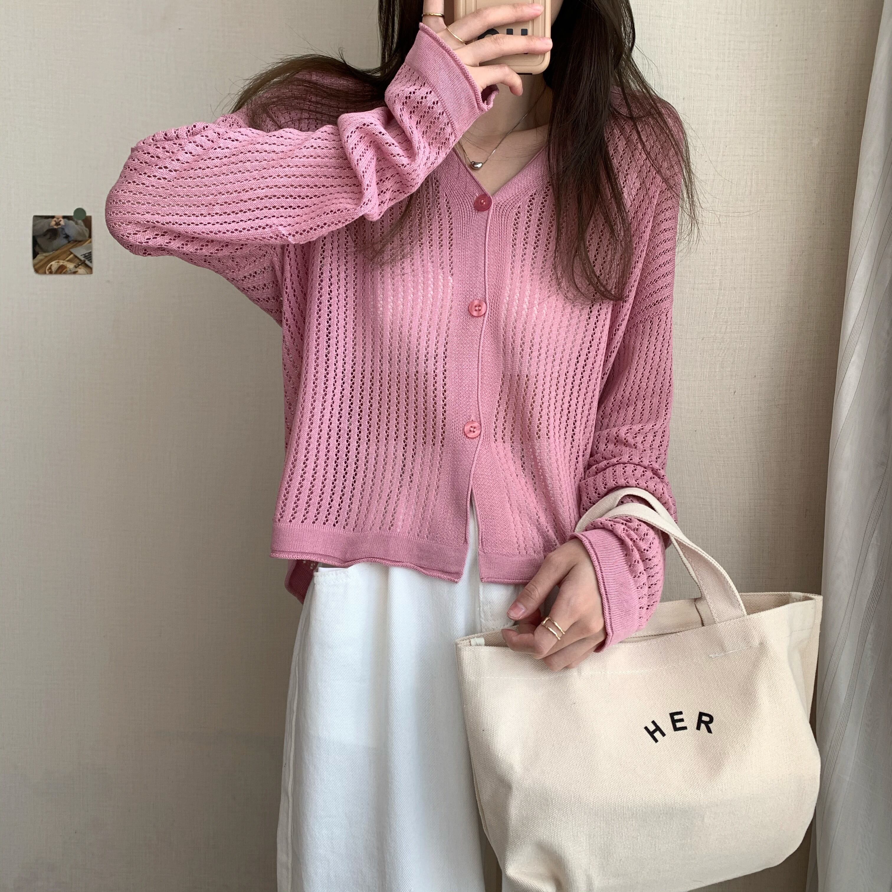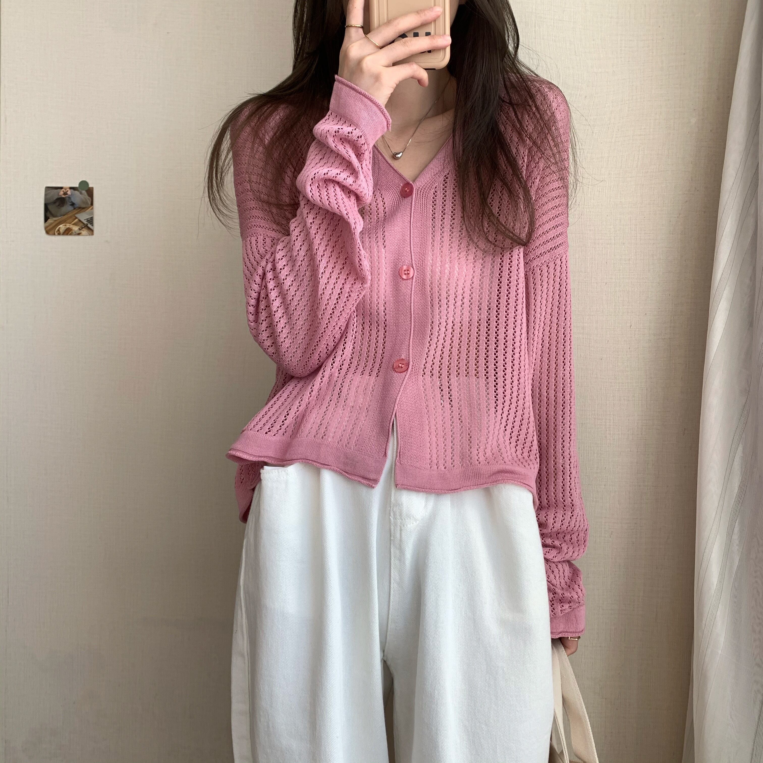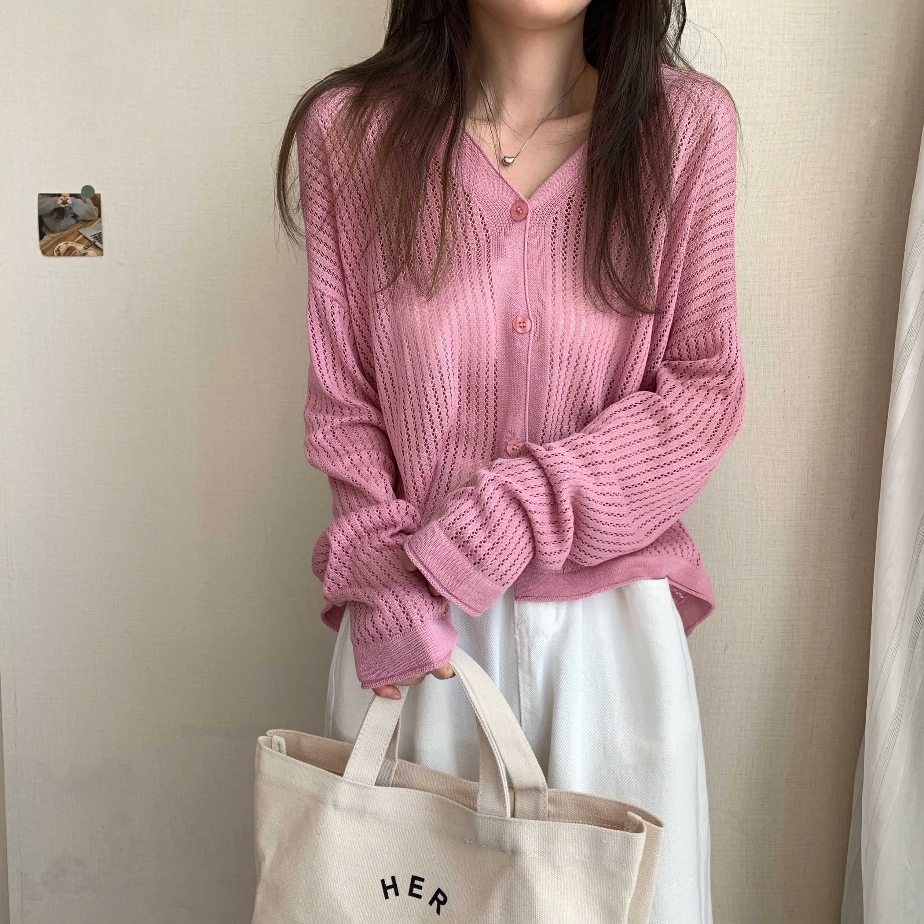 Vネックニットカーディガンジャケット レディースサマースタイルカジュアルブラウス 夏物 YY-ファッション83363843742