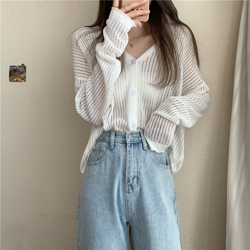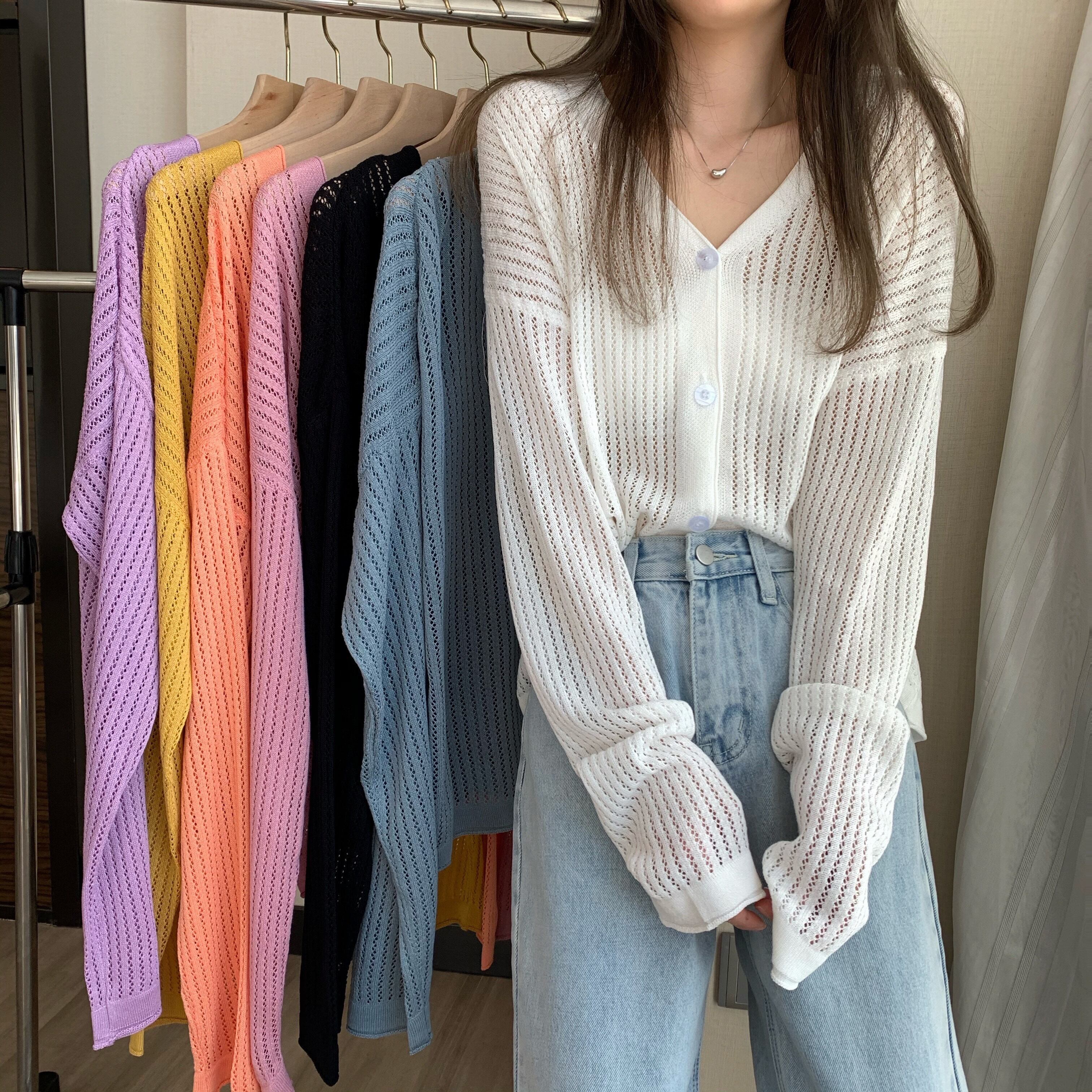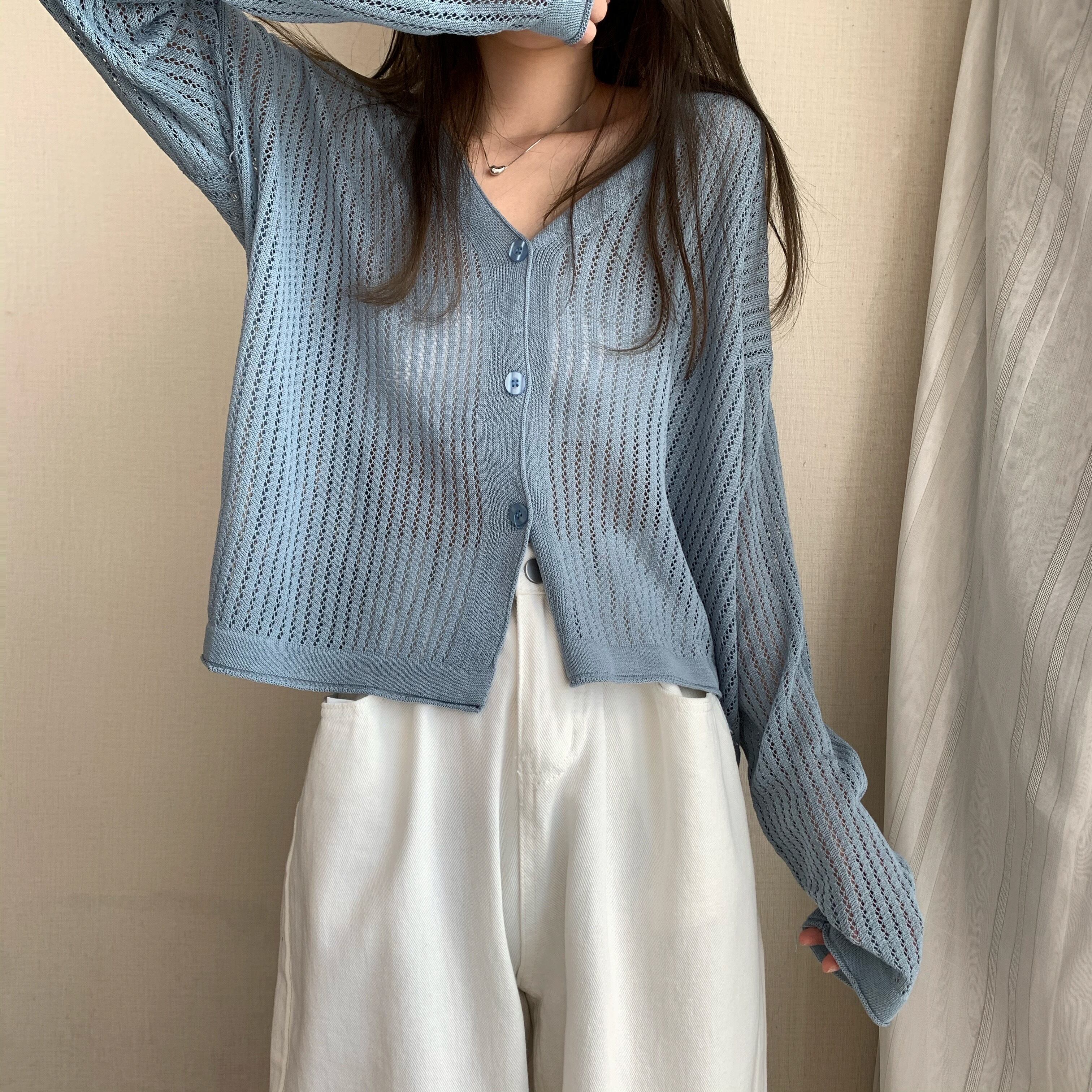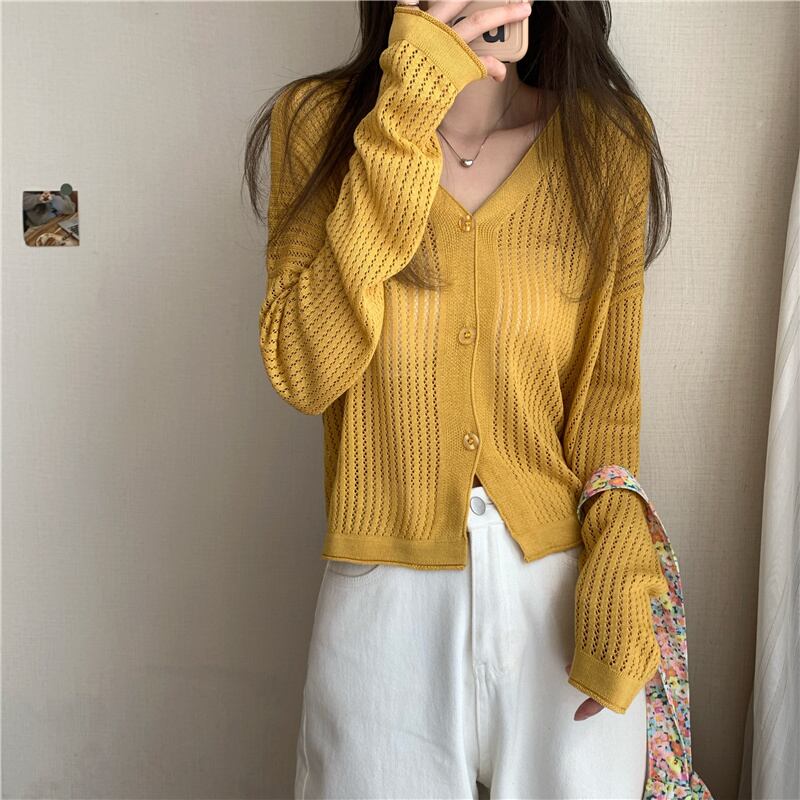 Vネックニットカーディガンジャケット レディースサマースタイルカジュアルブラウス 夏物 YY-ファッション83363843742