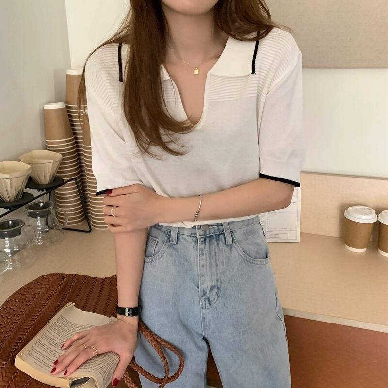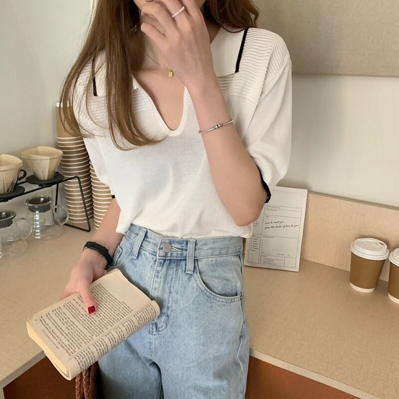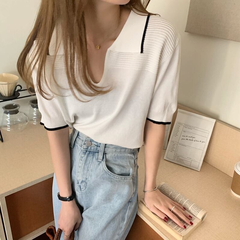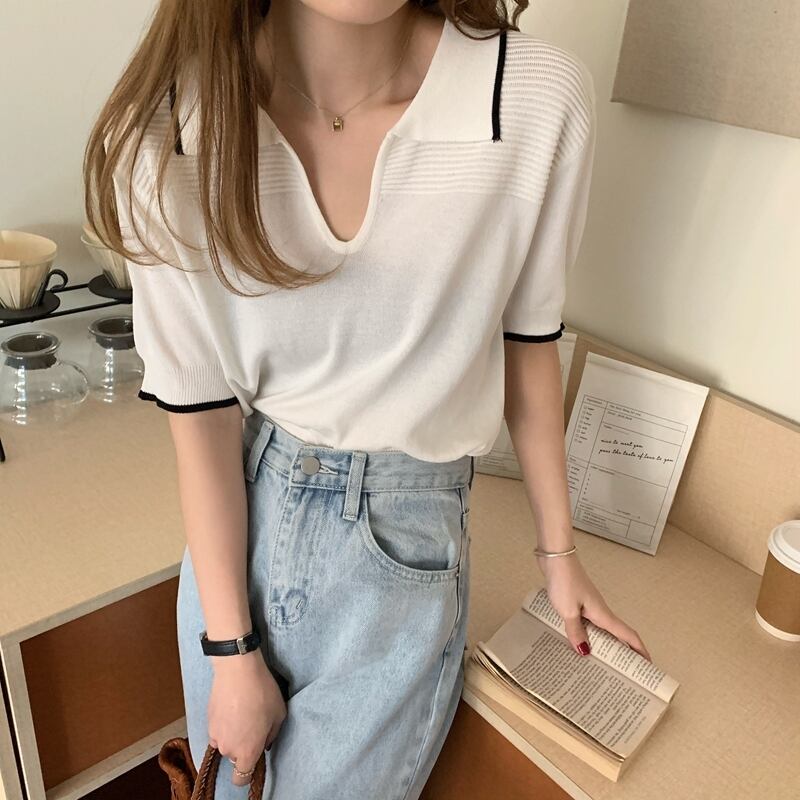 カラーセーター レディースサマースタイルカジュアルTシャツ トップス 夏物 YY-ファッション79408506841