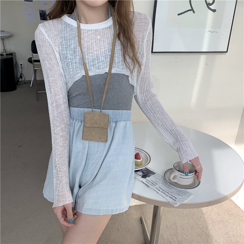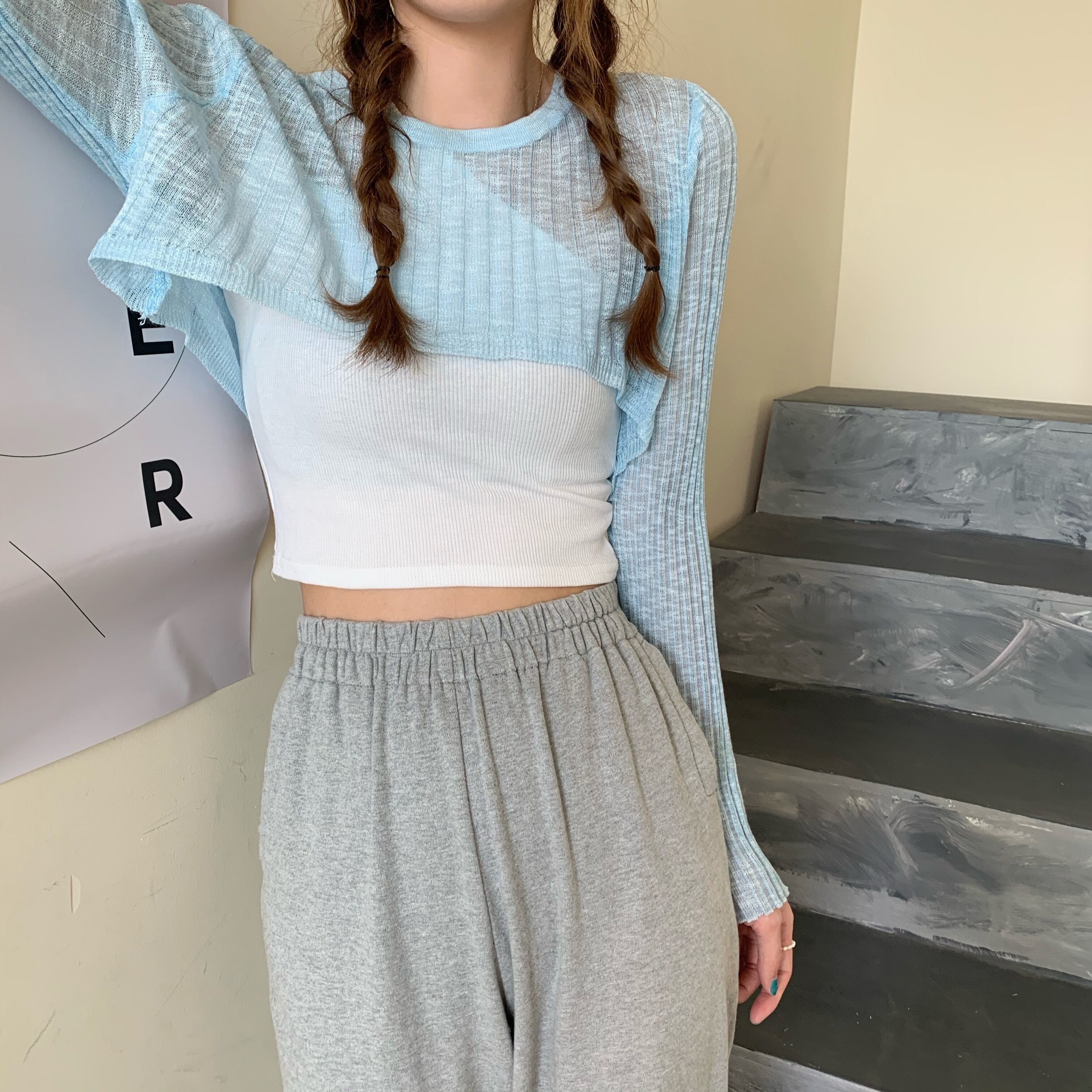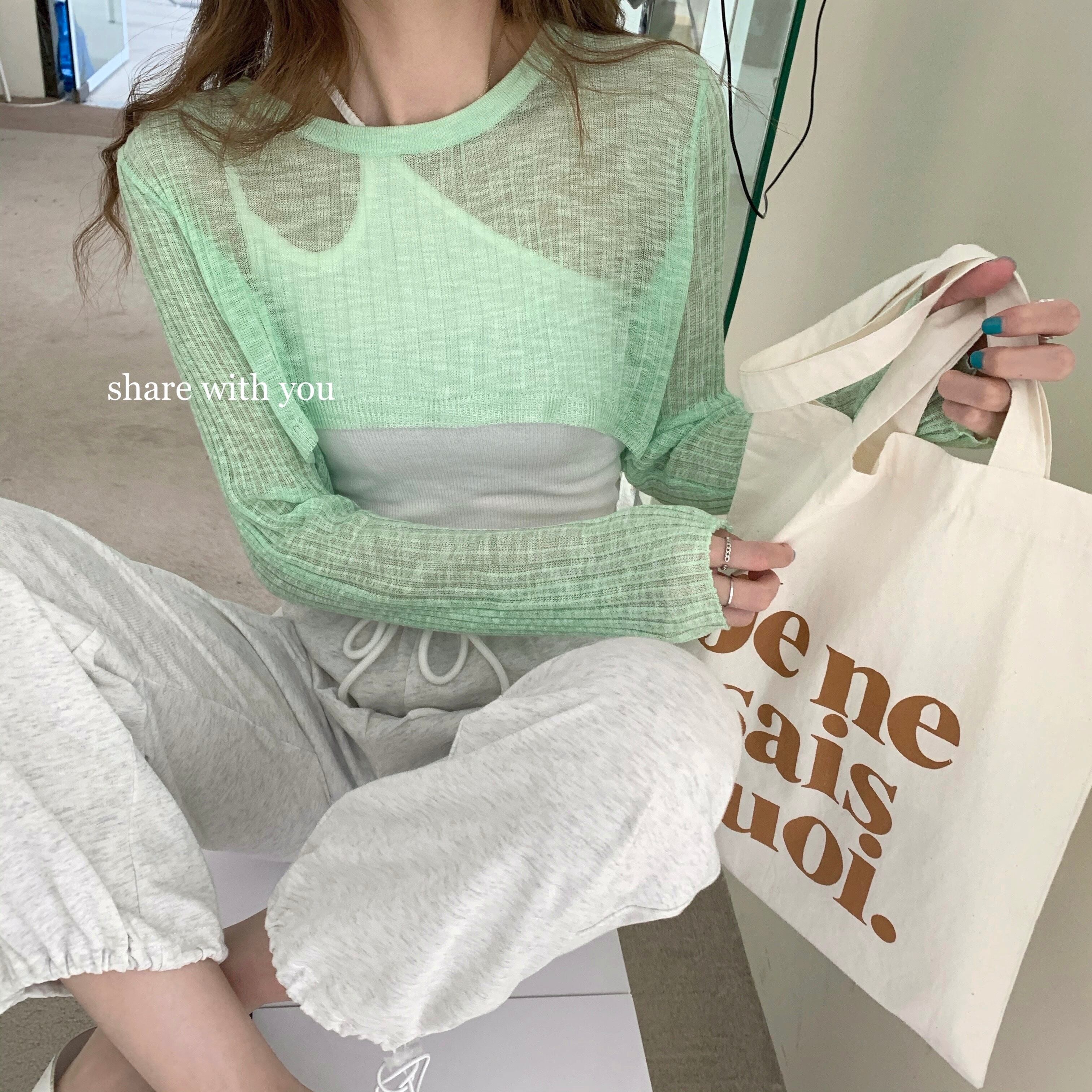ルーズトップス サマーカジュアルショートニットカーディガン ロング 夏物 YY-ファッション2790151100