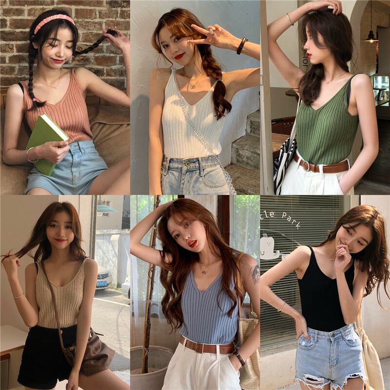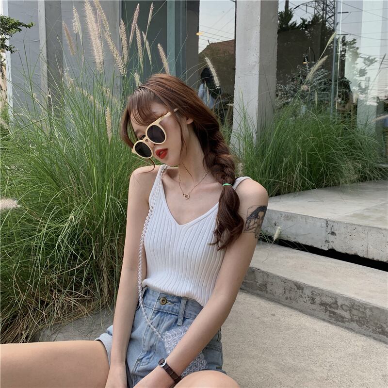 ニットVネックサマーノースリーブトップス 夏物 YY-ファッション79837152020