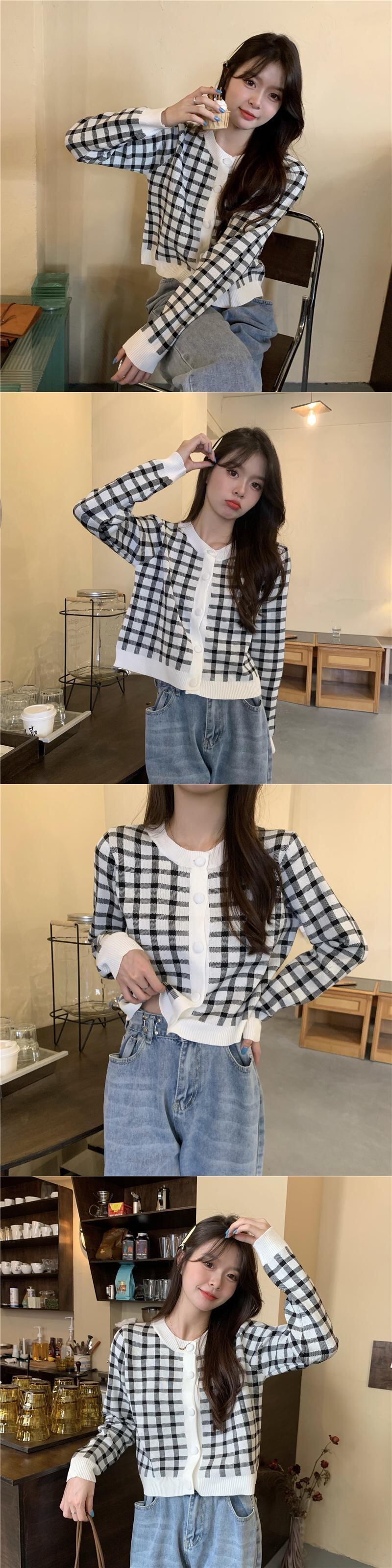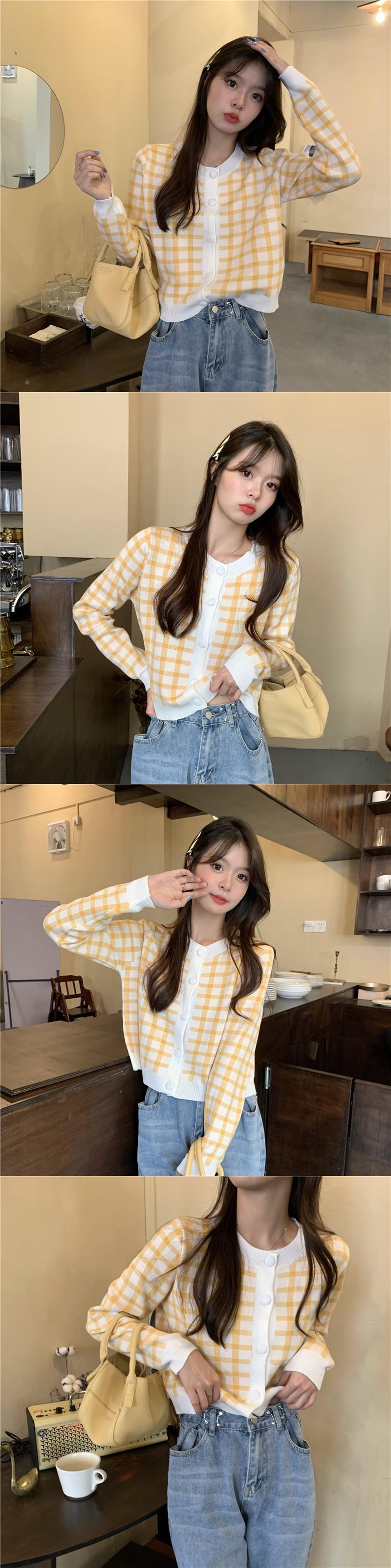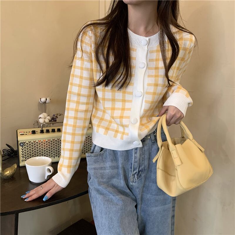 スタイル格子柄セーター ジャケット オータムVネックニットカーディガン ロング 秋物 YY-ファッション75501804729