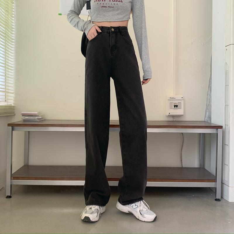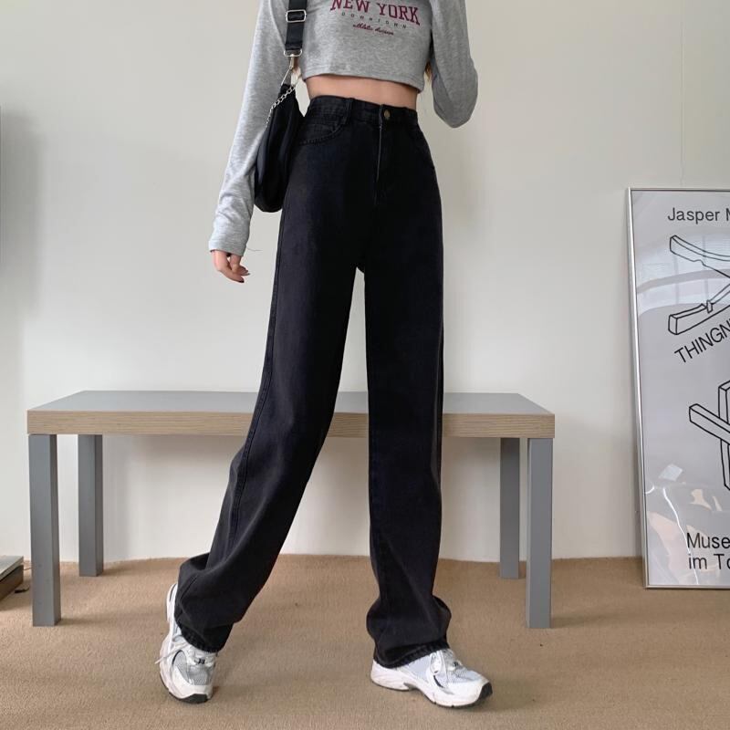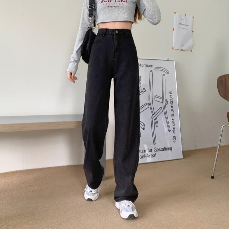 ブラックジーンズ パンツ スプリングオータムハイウェストウェストルーズ 春物 秋物 YY-ファッション77367555117