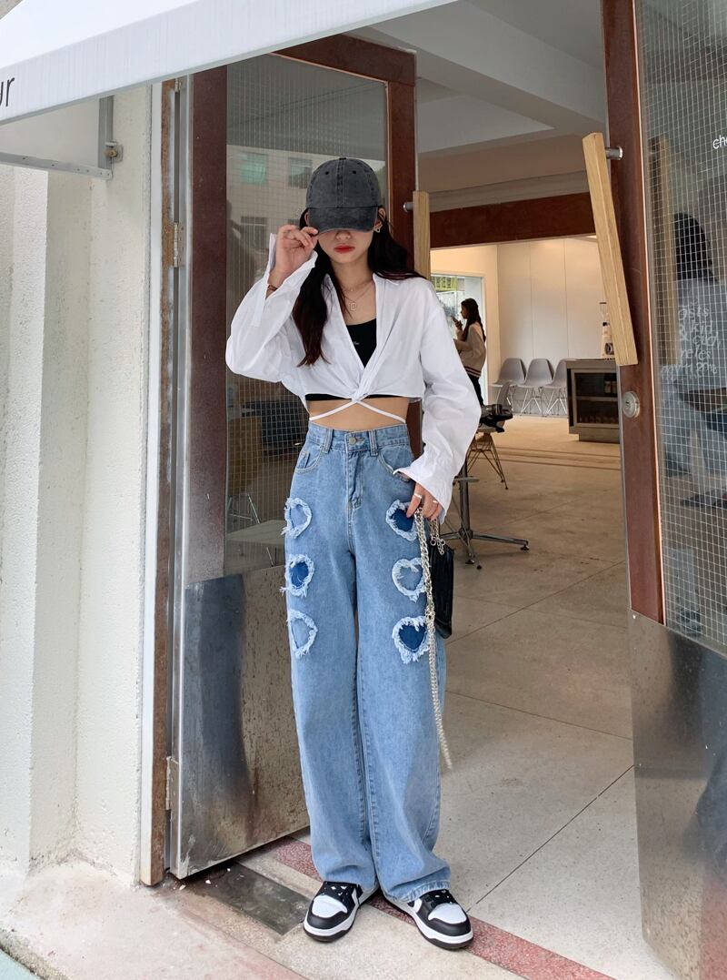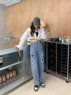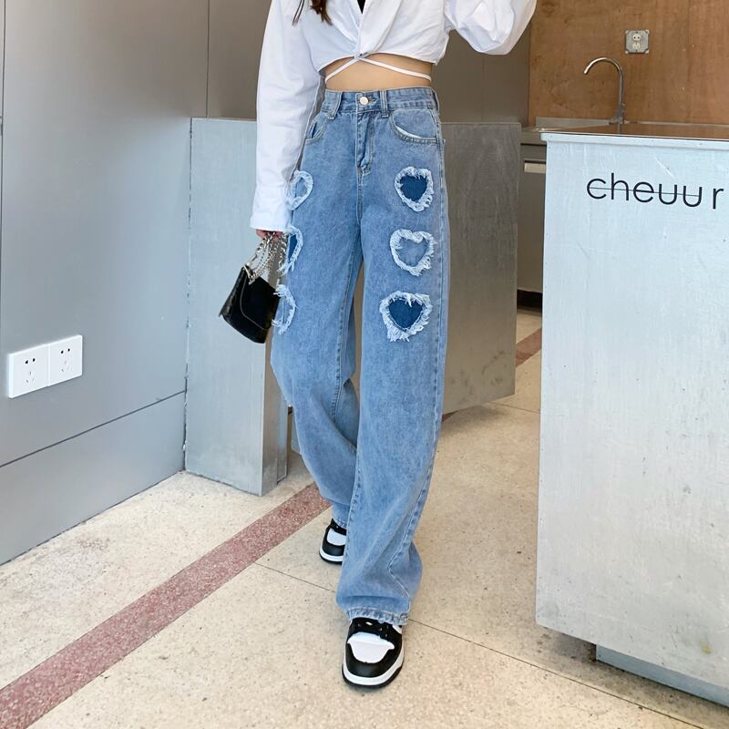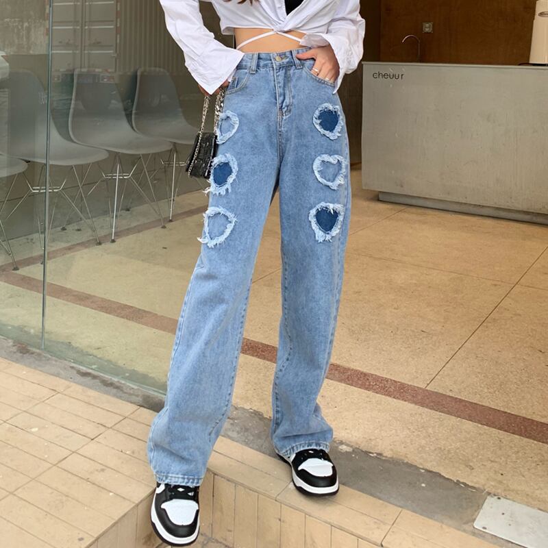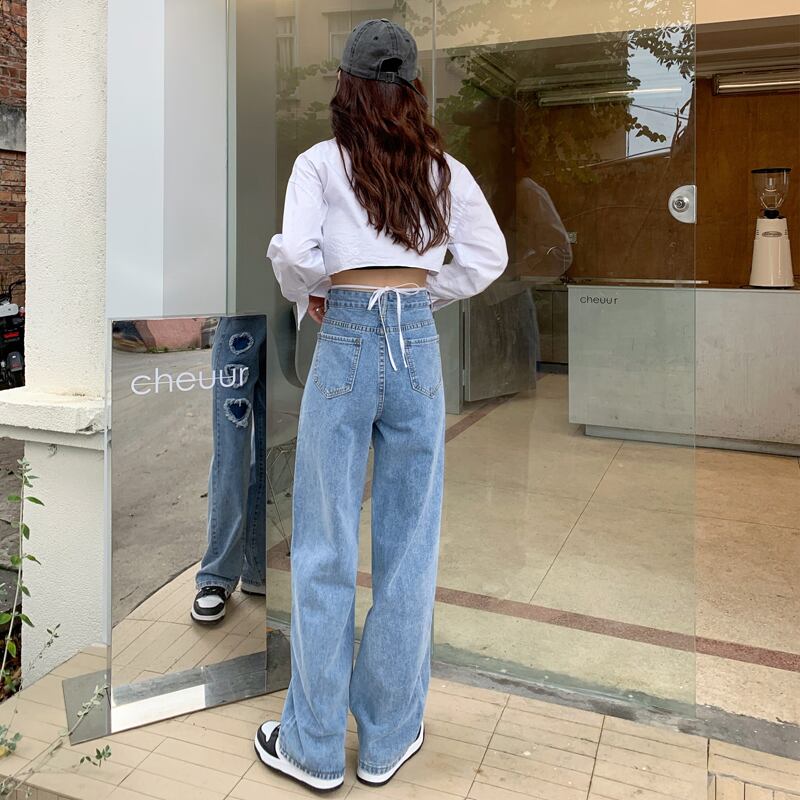 ハイウェストウェストスリムパンツ オータムルーズジーンズ 秋物 ステッチ YY-ファッション5456554757